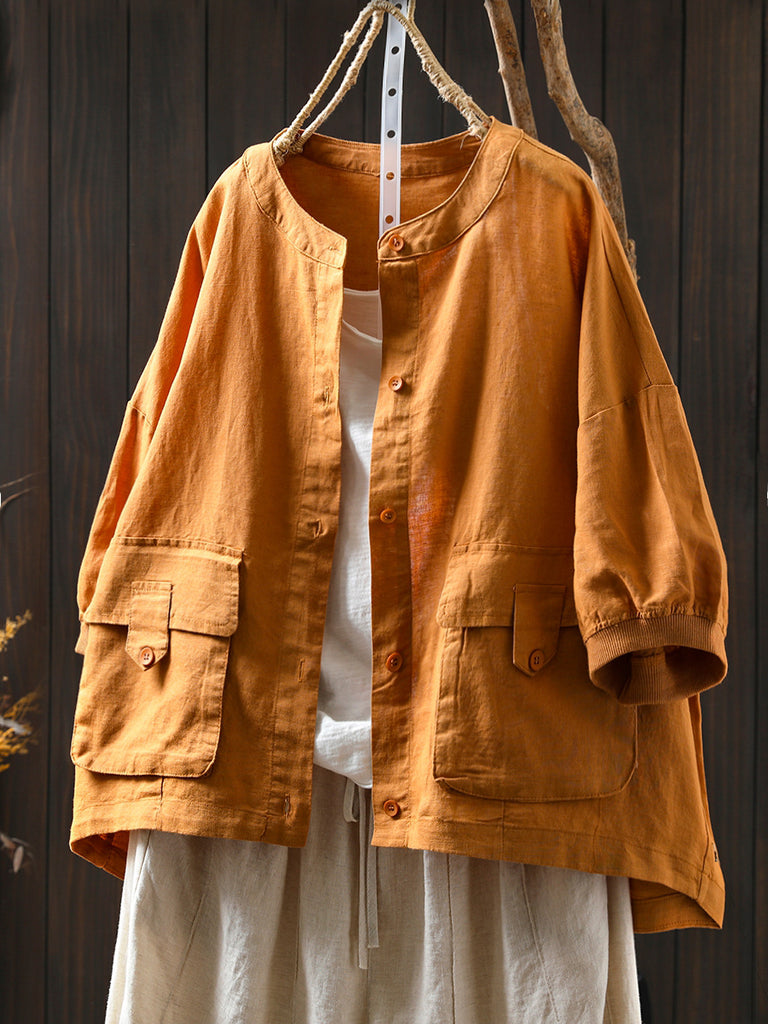 Women Artsy Pure Color Turtleneck 100%Linen Hoodie