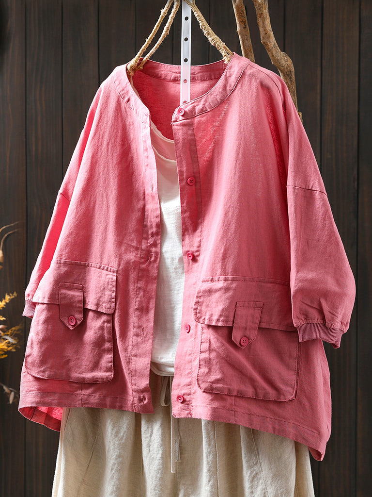 Women Spring Casual Pure Color 100%Cotton Shirt