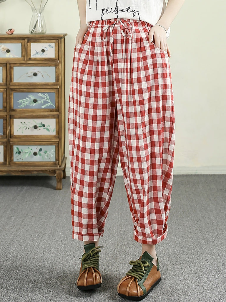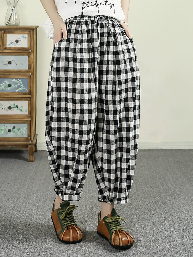 Women Winter Artsy Plaid Fleece-lined Straight Pants