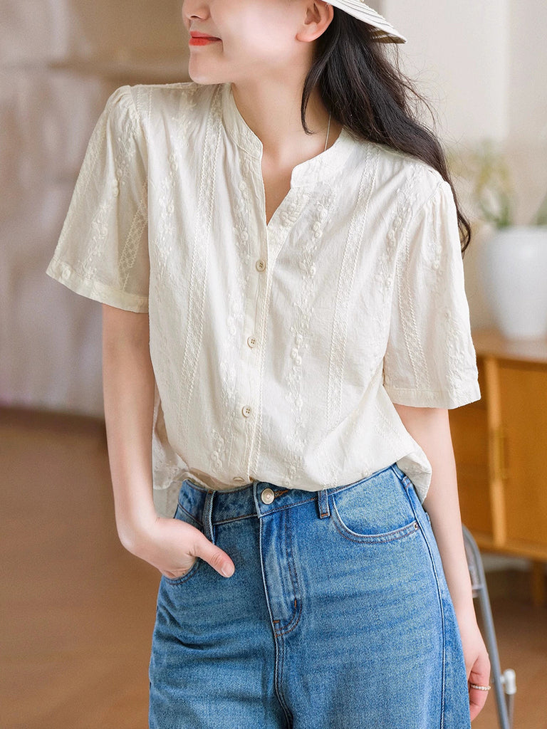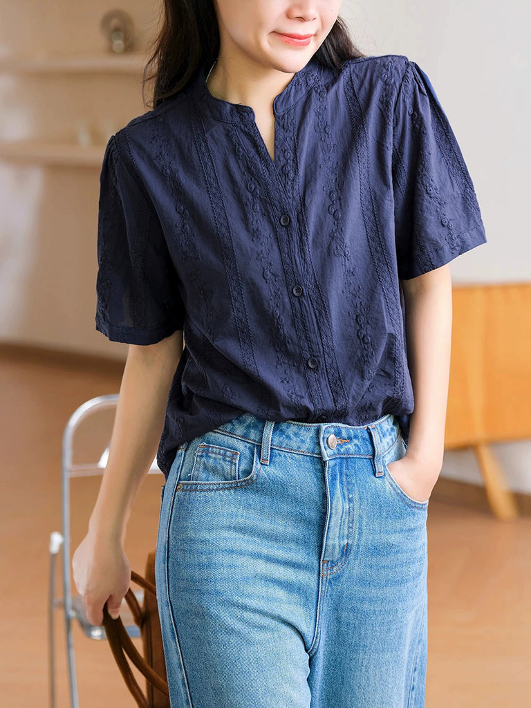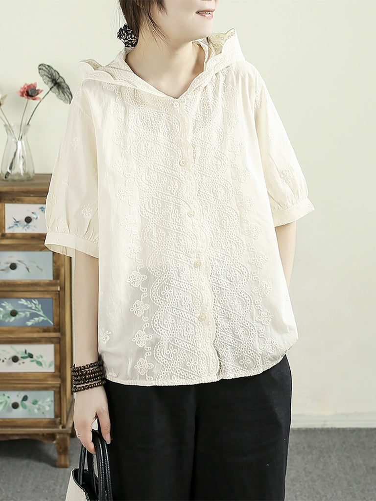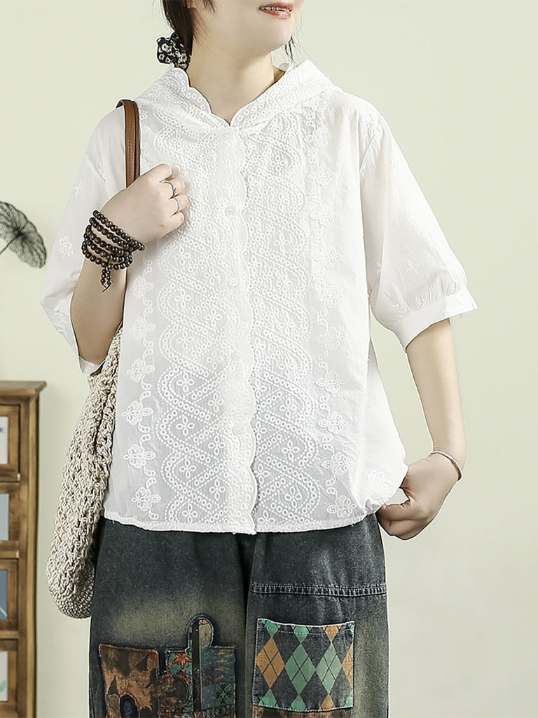 Women Artsy Spring Embroidery Lace 100%Cotton Shirt