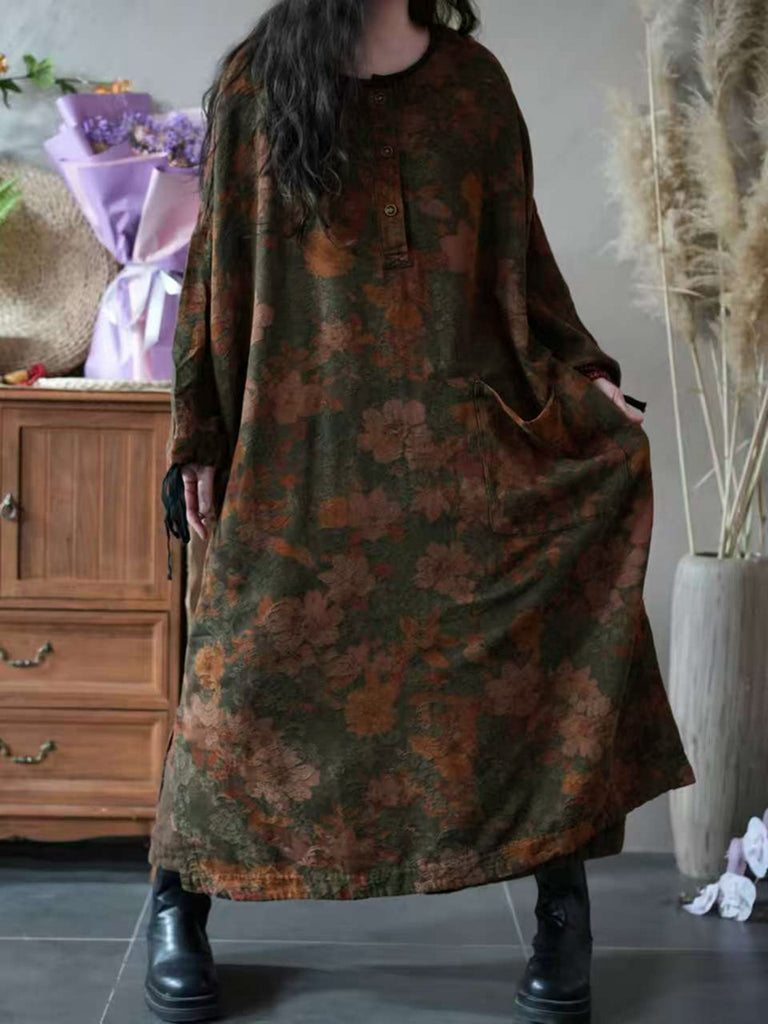 Women Autumn Retro Patchwork O-Neck Cotton Dress