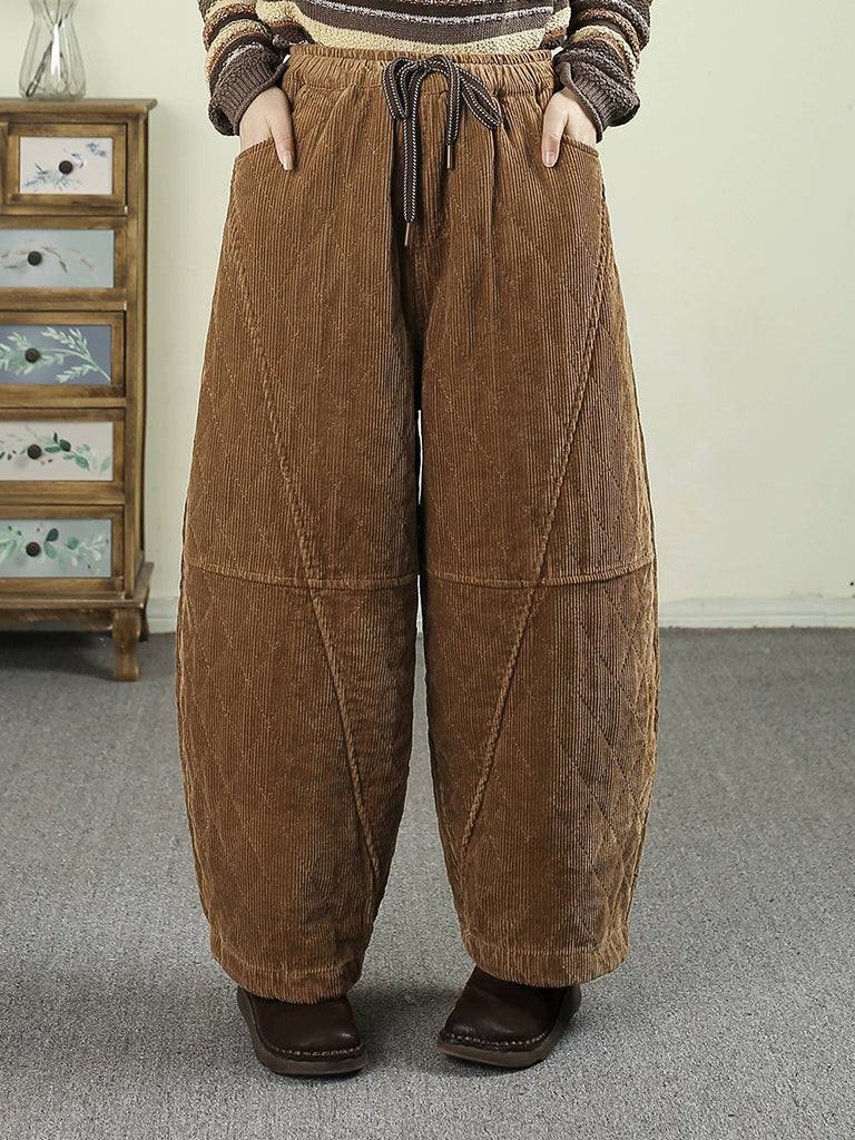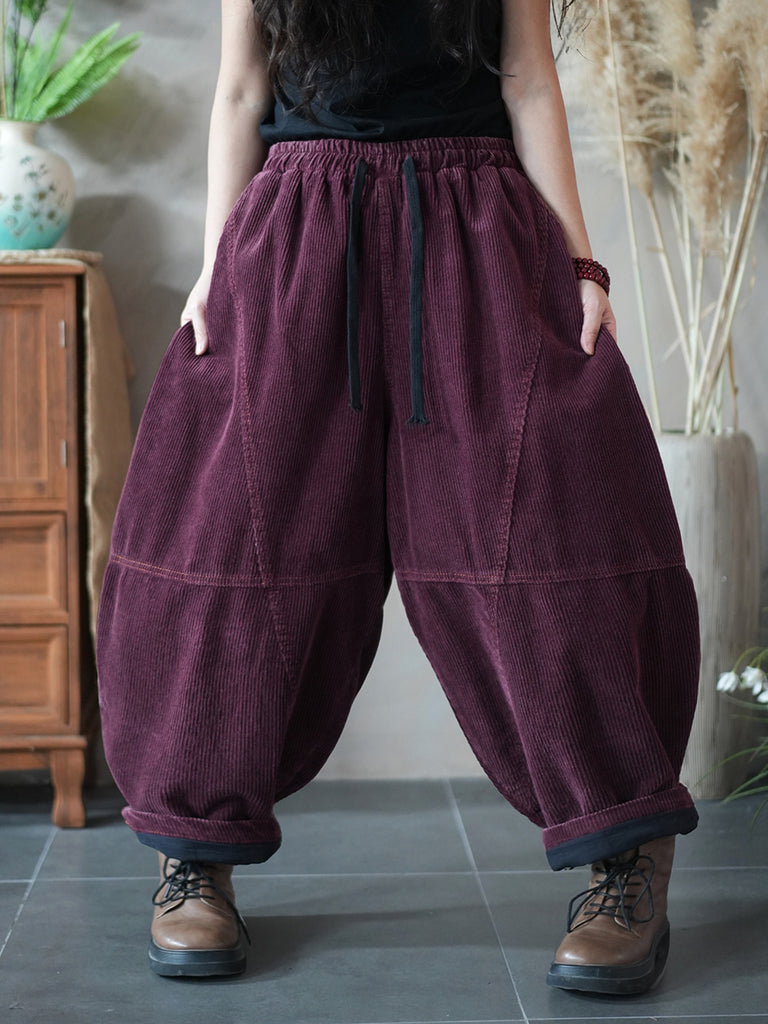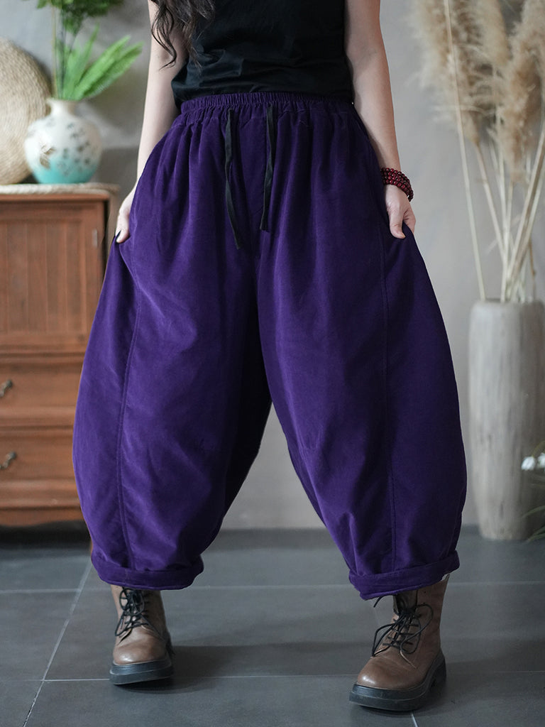 Women Winter Retro Pure Color Corduroy Padded Harem Pants