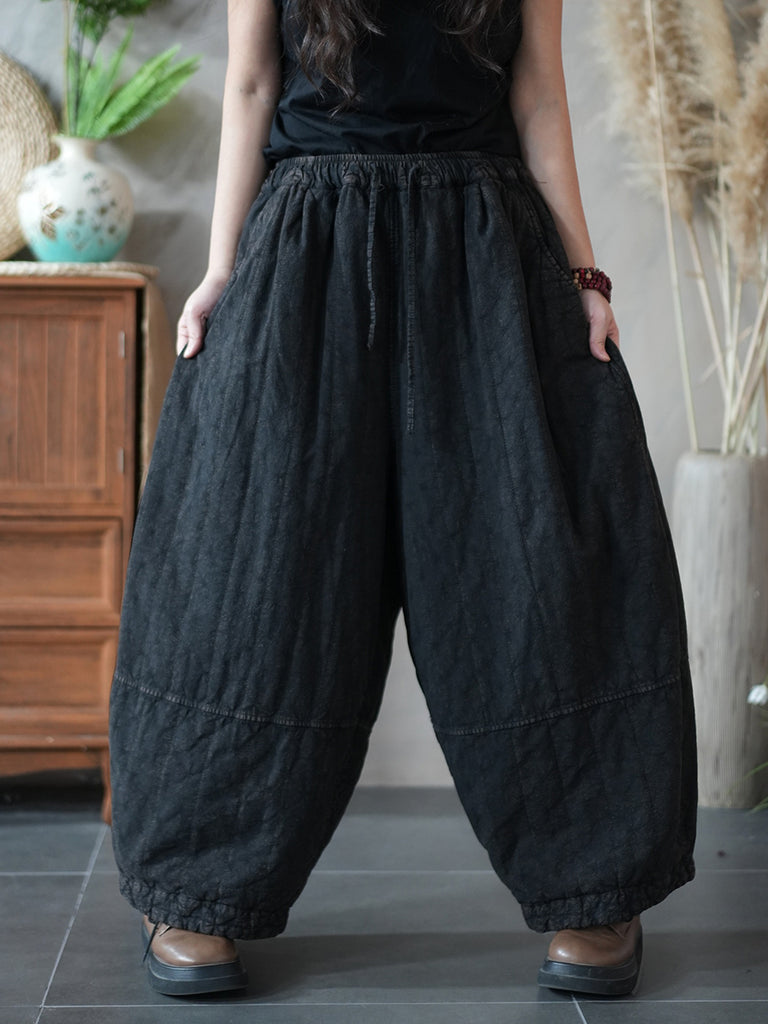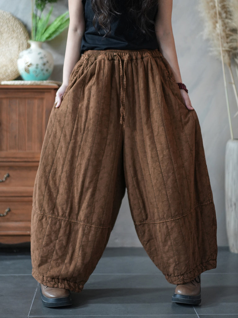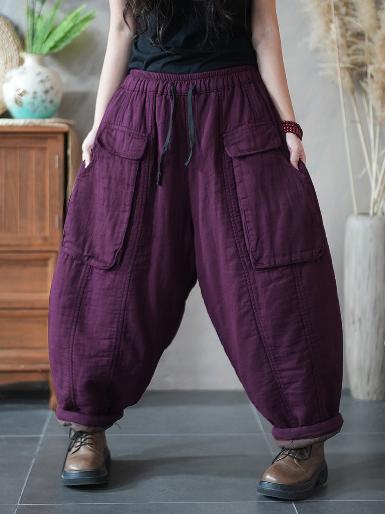 Women Winter Retro Pure Color Padded Harem Pants