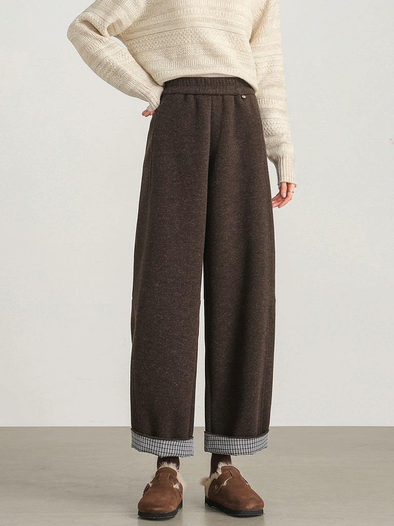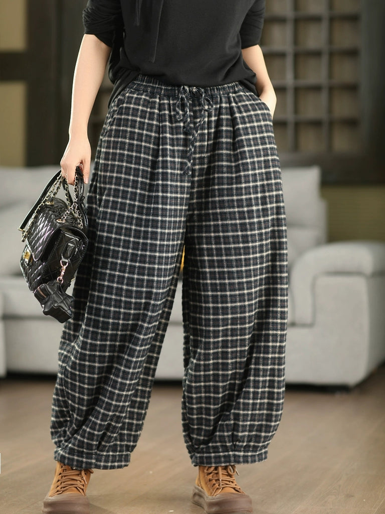 Women Winter Retro Plaid 100%Cotton Padded Harem Pants