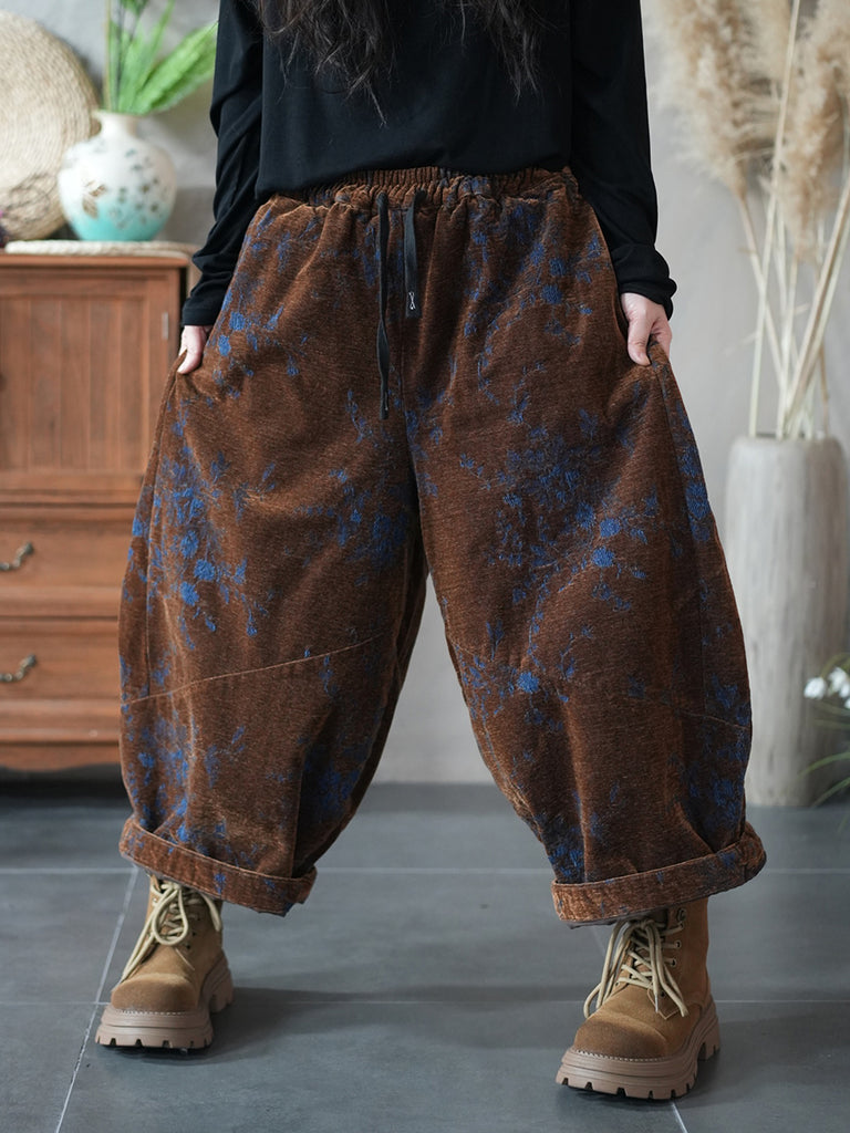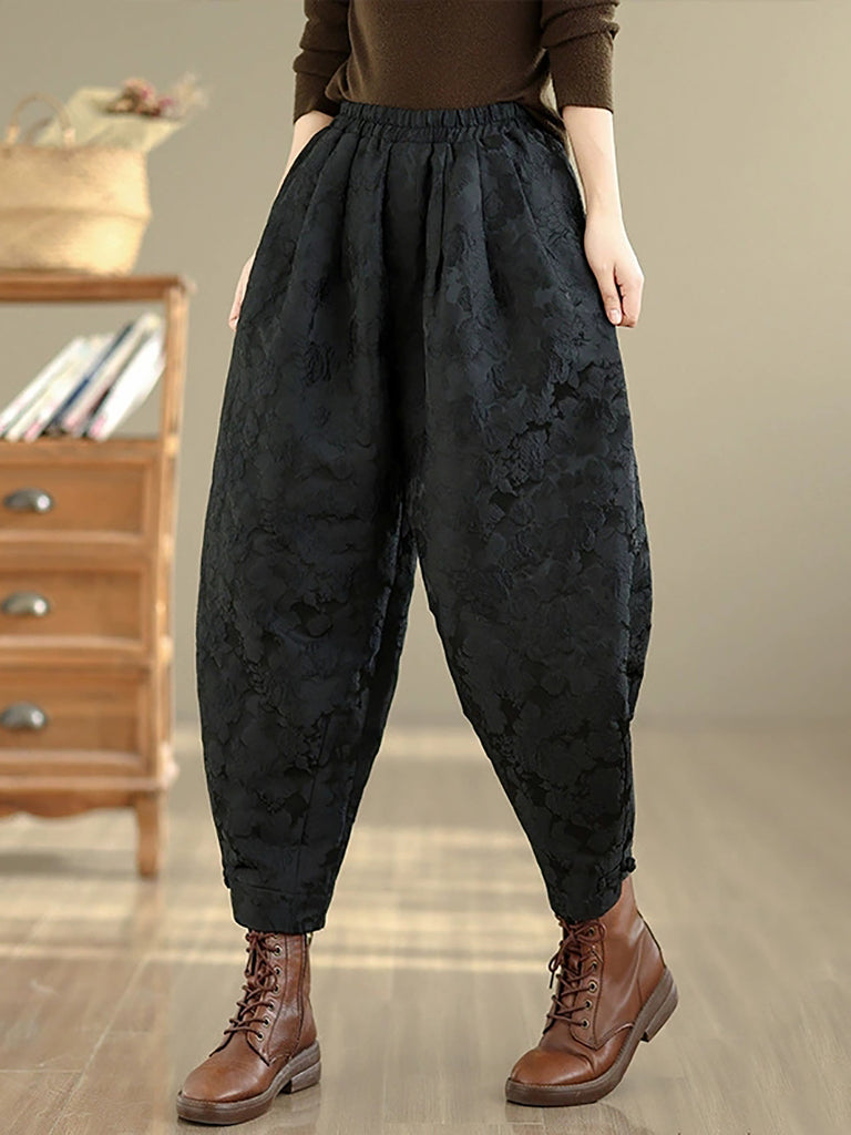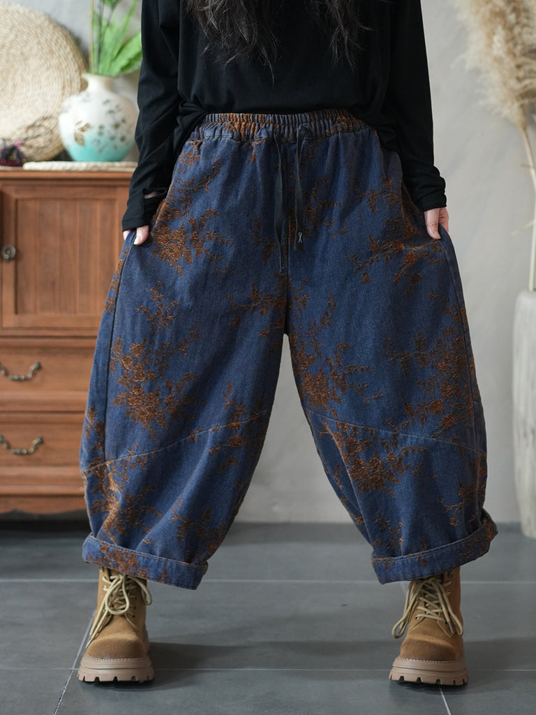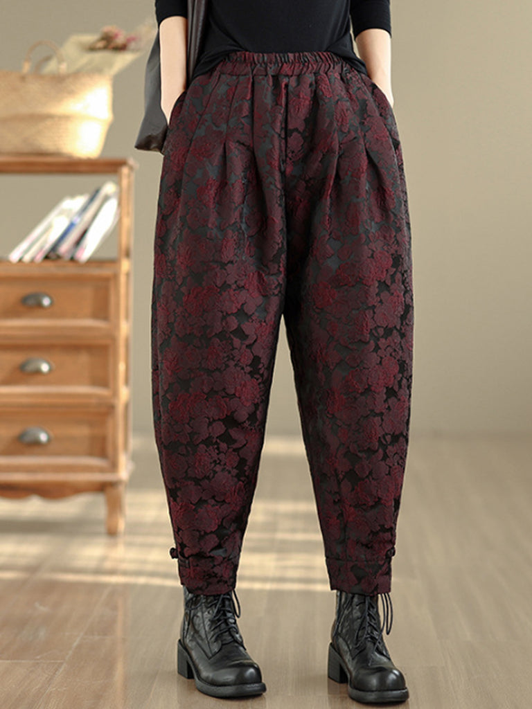 Women Winter Retro Flower Padded Harem Pants