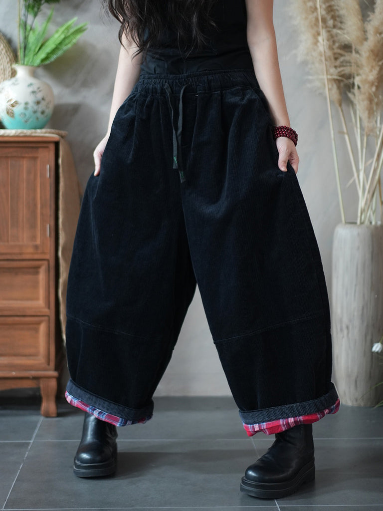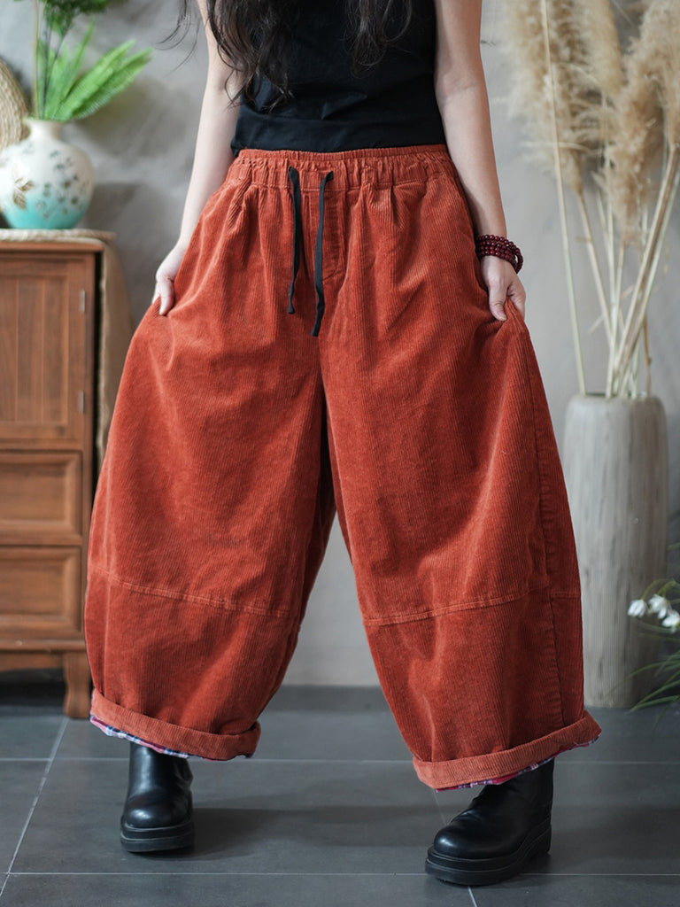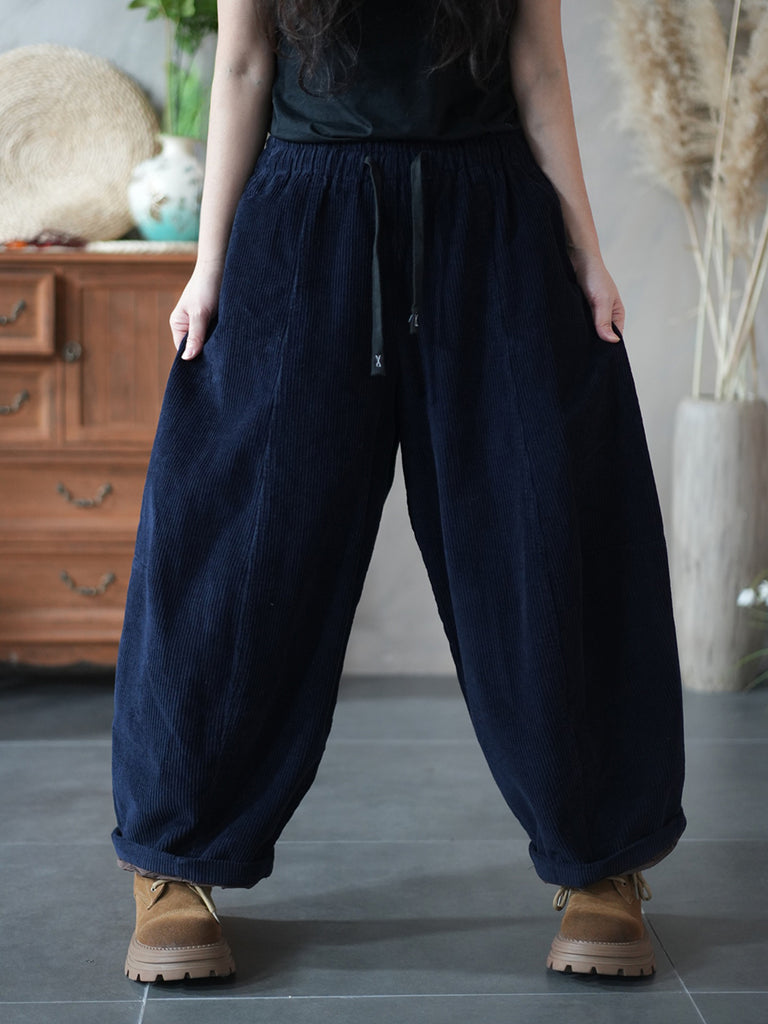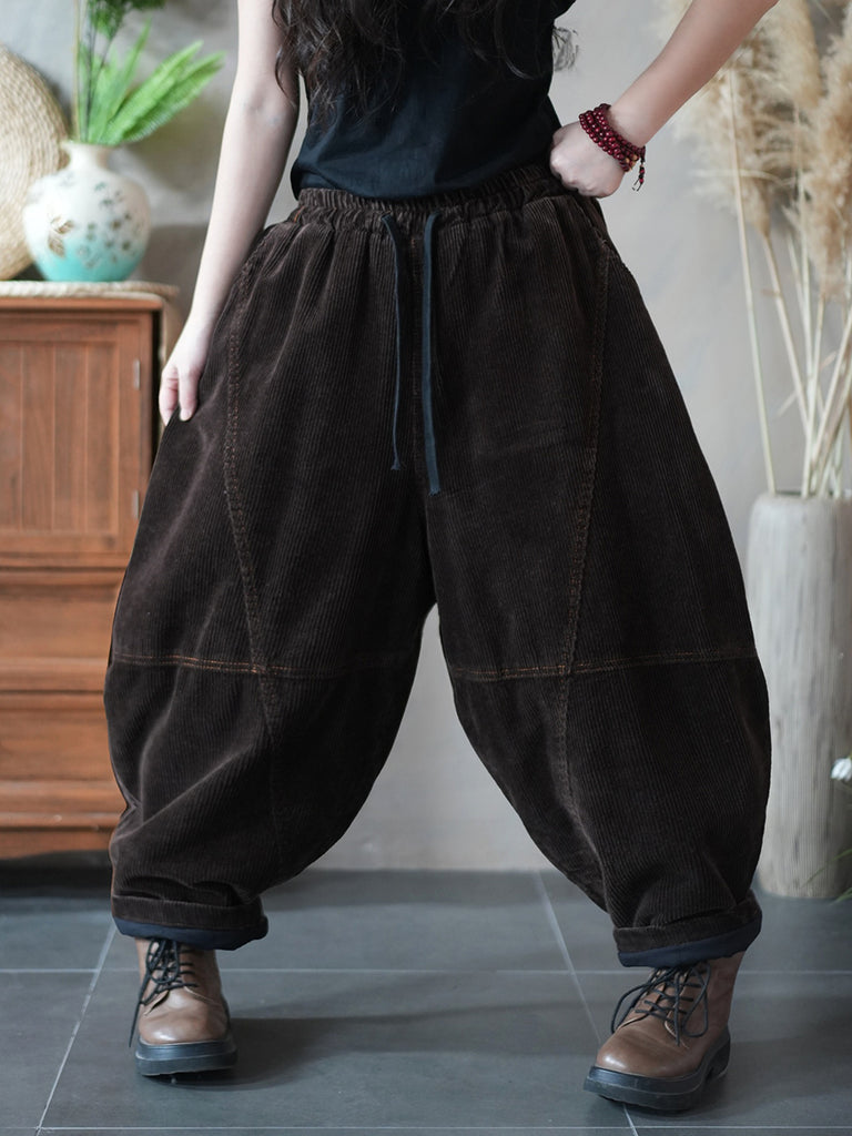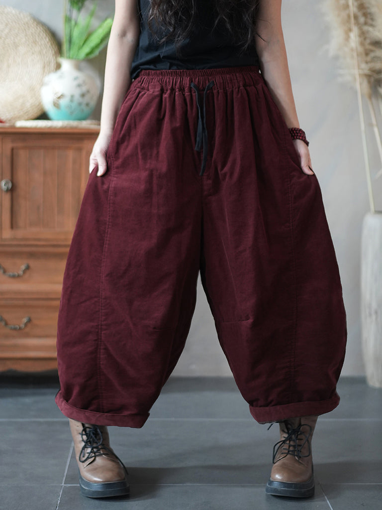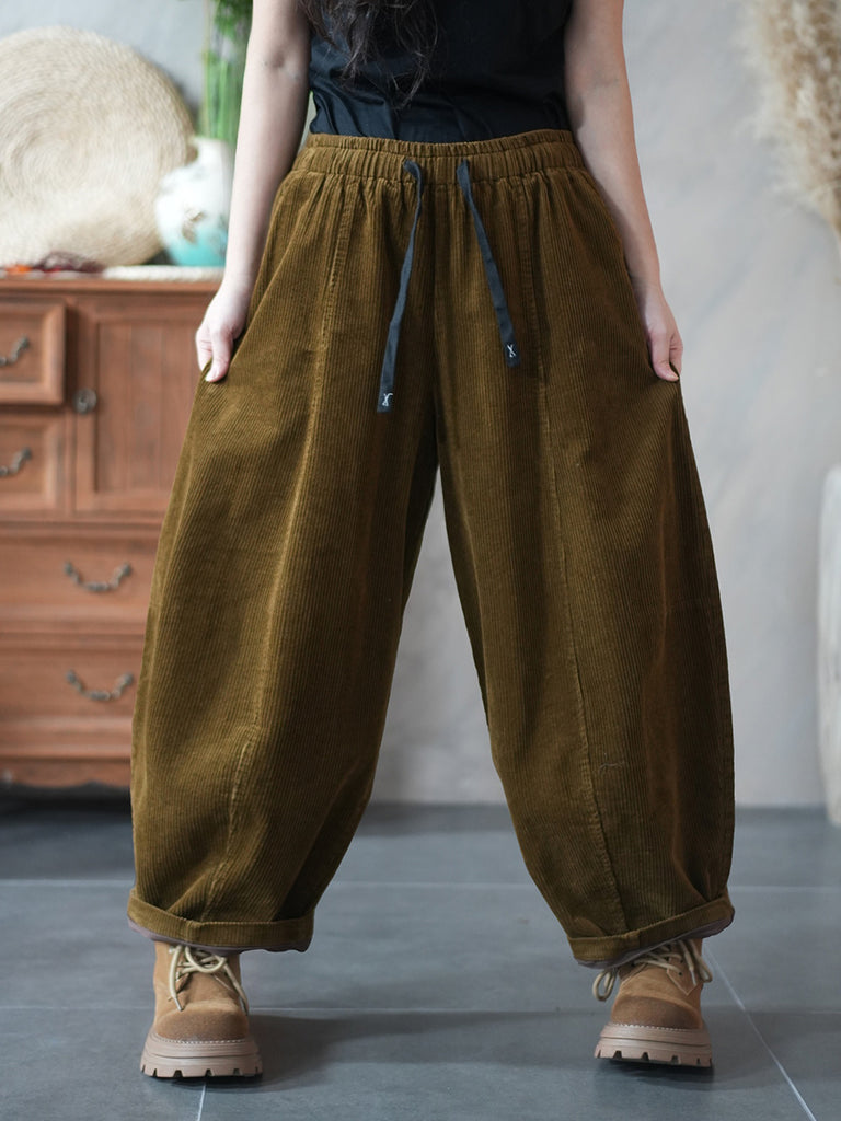 Women Winter Retro Pure Color Corduroy Harem Pants