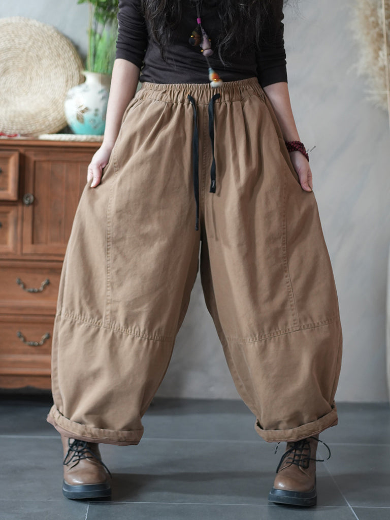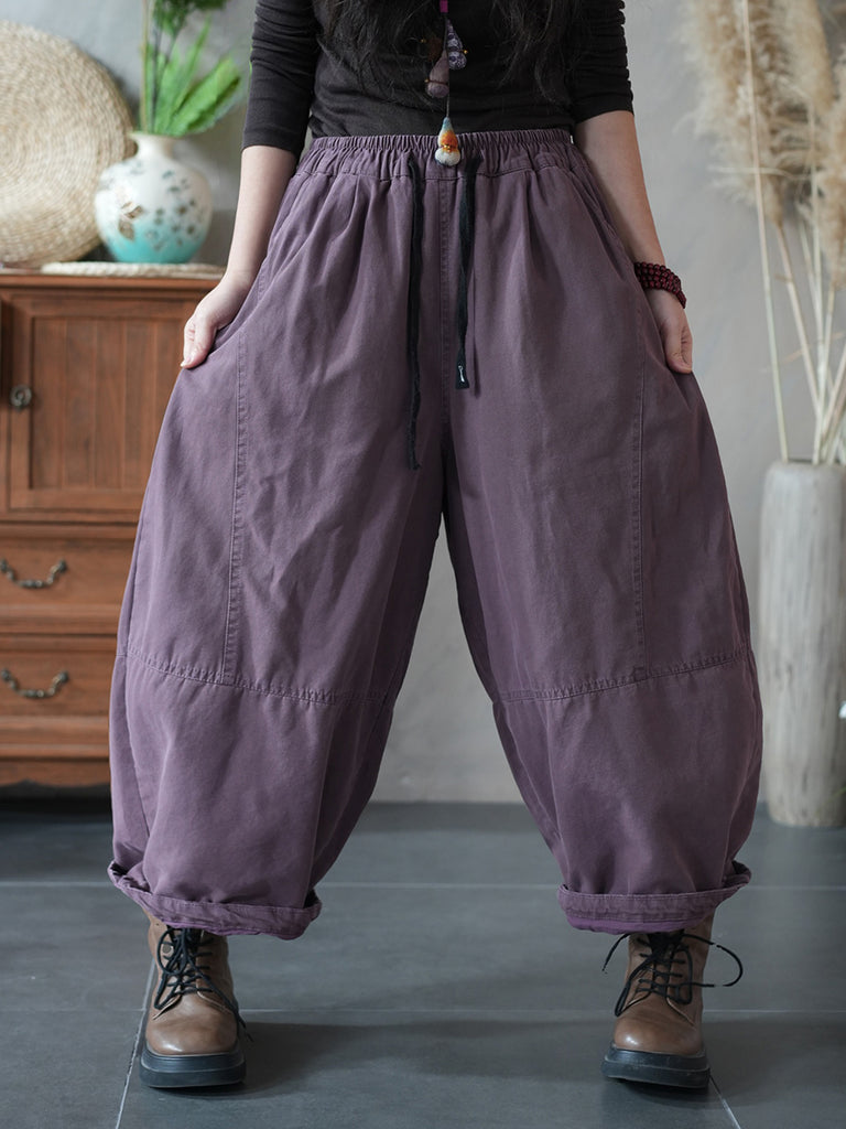 Women Winter Retro Pure Color 100%Cotton Harem Pants