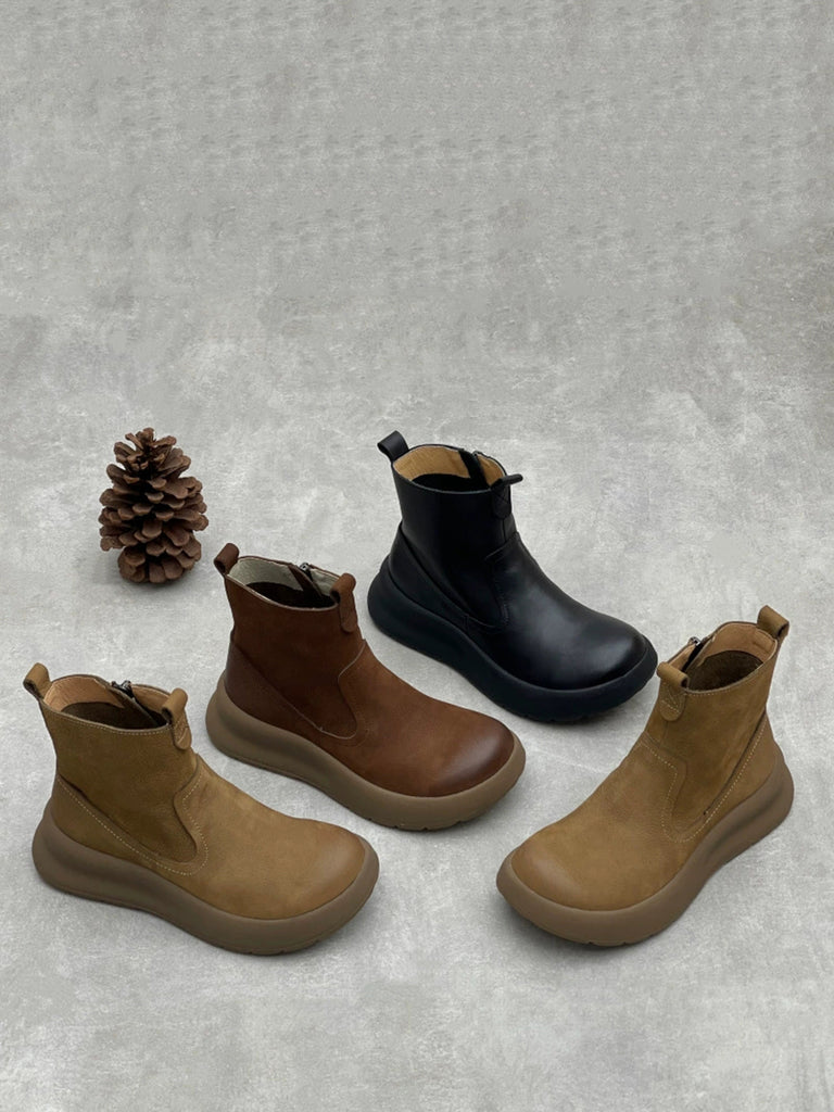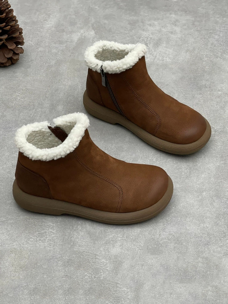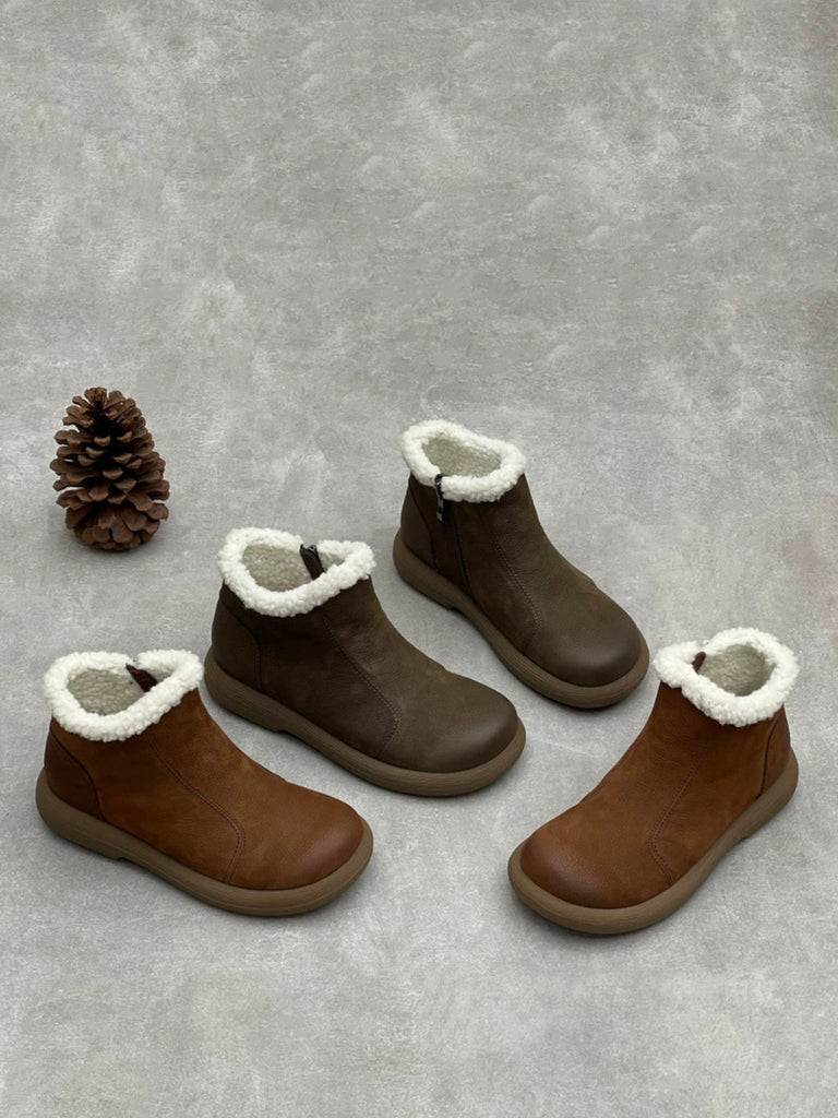 Women Vintage Genuine Leather Fleece-lined Ankle Boots