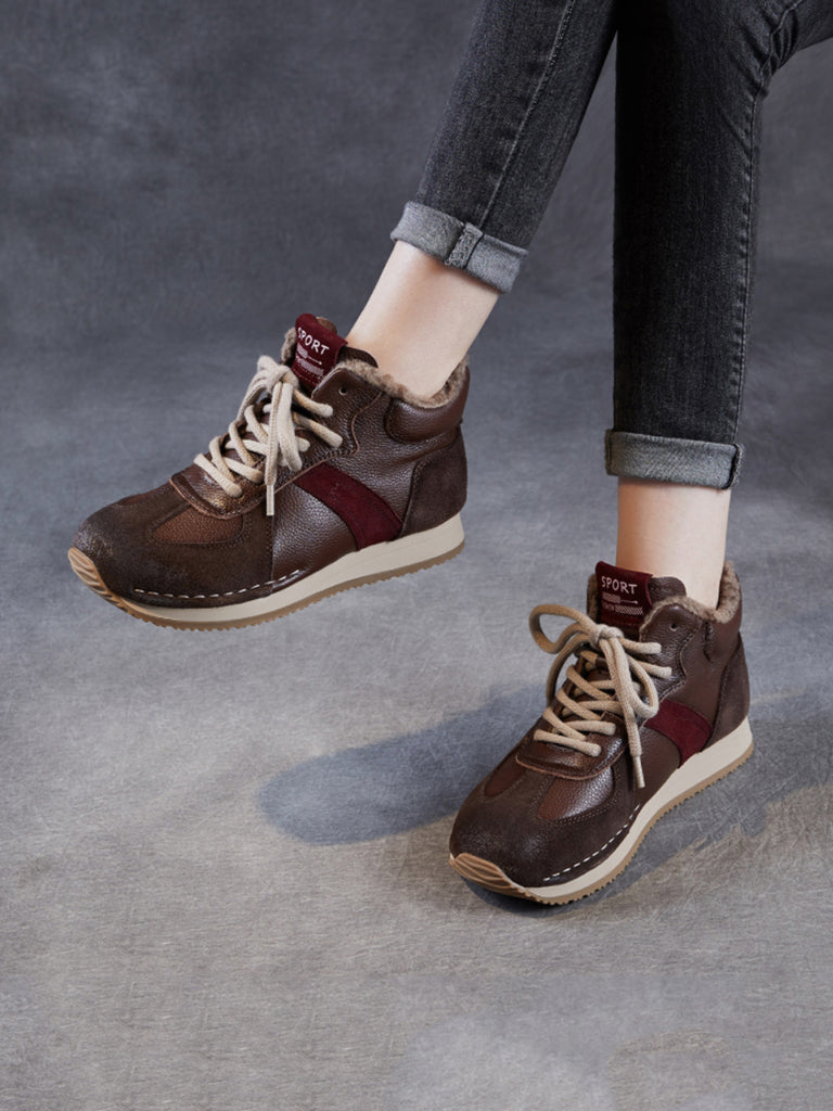 Women Vintage Genuine Leather Fleece-lined Platform Boots