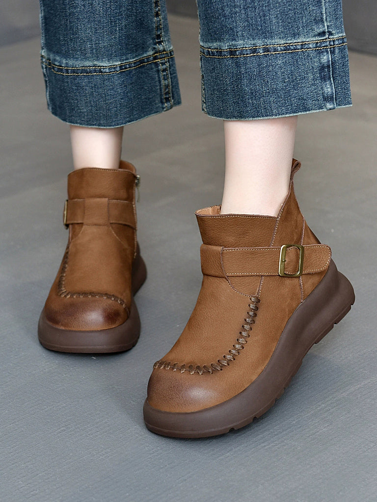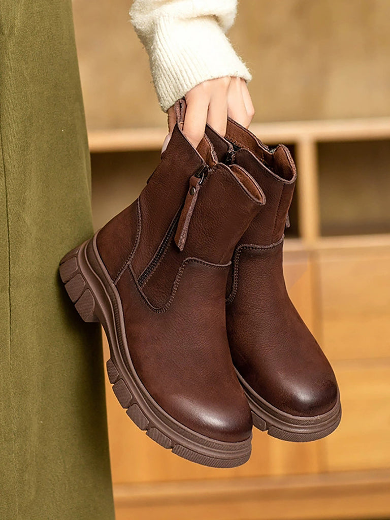 Women Vintage Genuine Leather Fleece-lined Ankle Boots