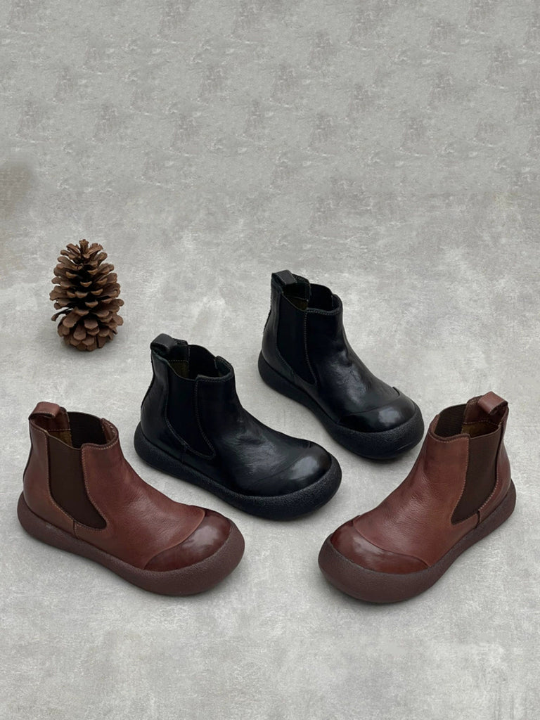 Women Vintage Genuine Leather Spliced Ankle Boots