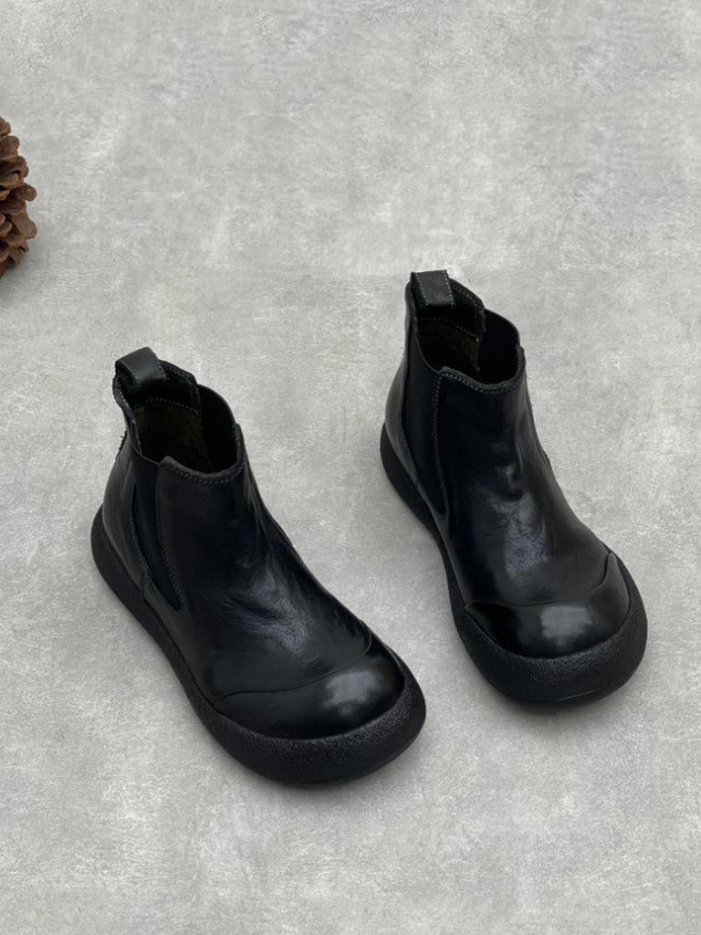 Women Vintage Pure Color Genuine Leather Ankle Boots