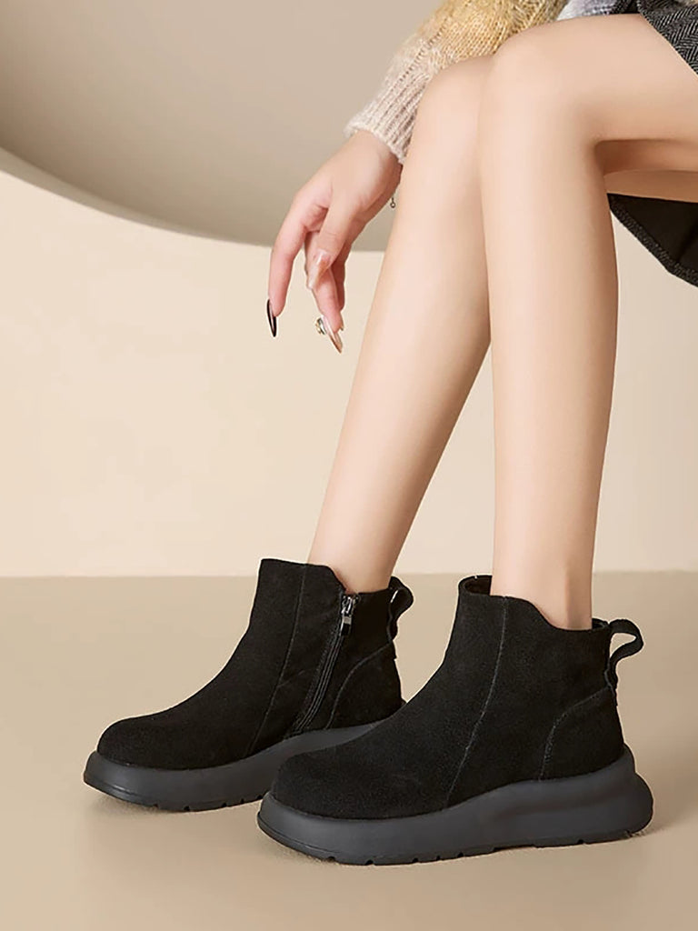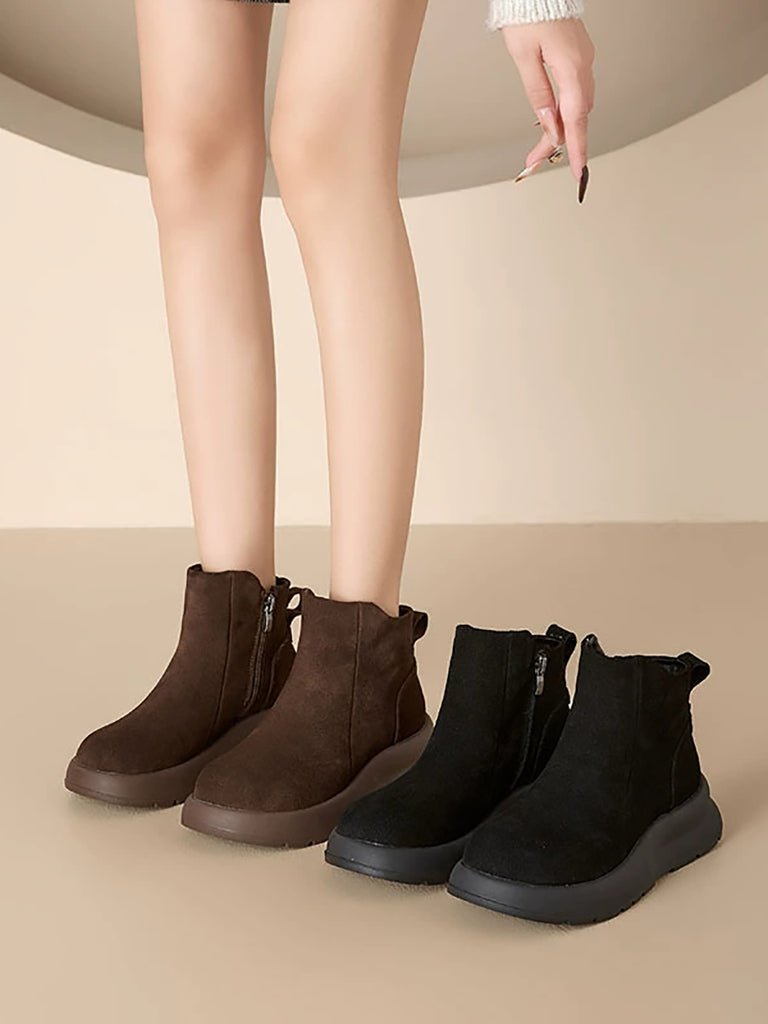 Women Winter Vintage Suded Leather Fleece-lined Boots