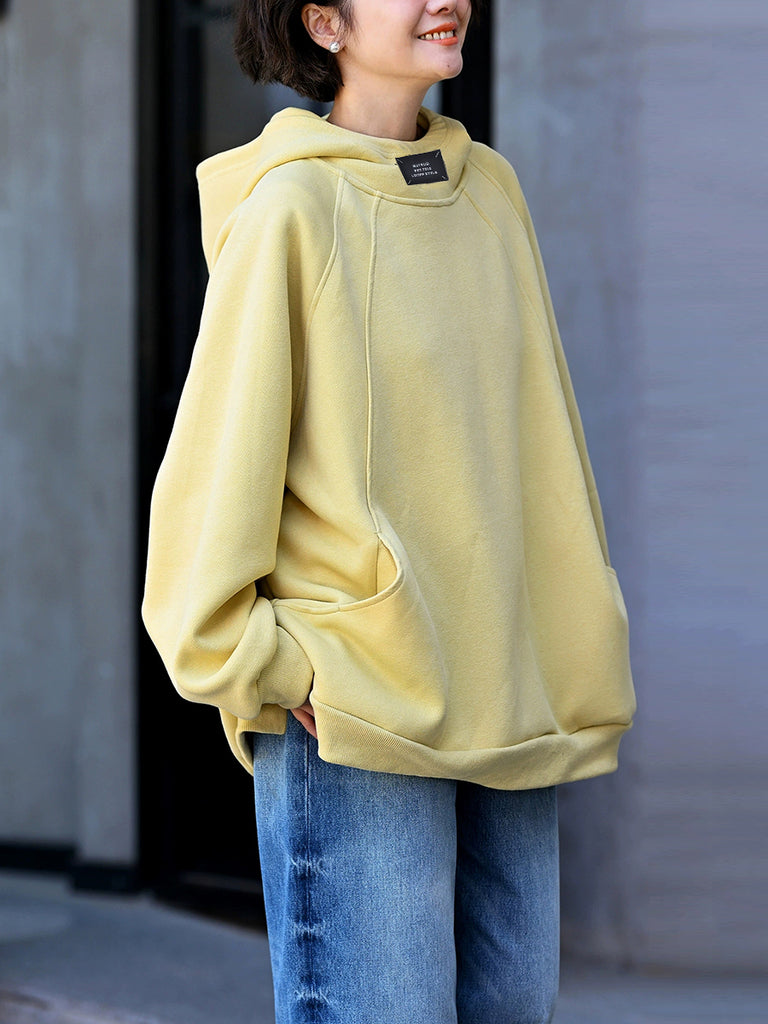 Plus Size Women Autumn Casual Pure Color Cotton Hoodie