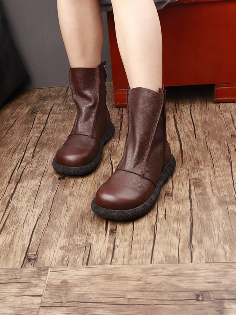 Women Vintage Genuine Leather Fleece-lined Boots
