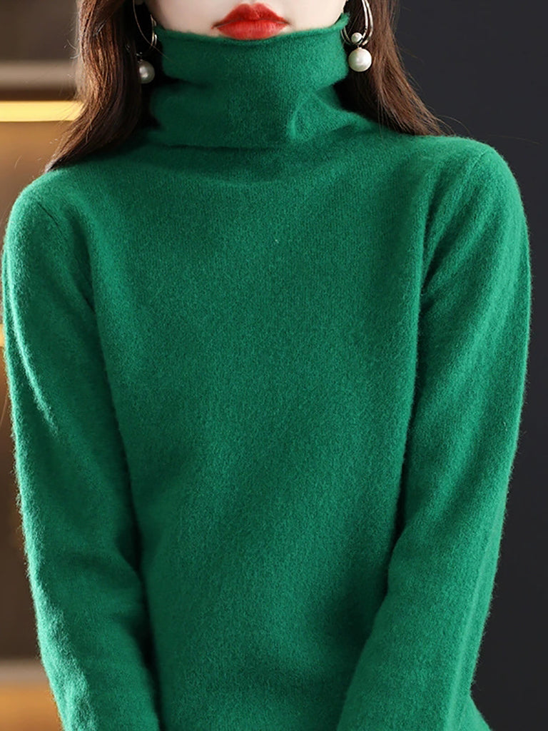 Women Autumn Casual Turtleneck Knitted Wool Sweater