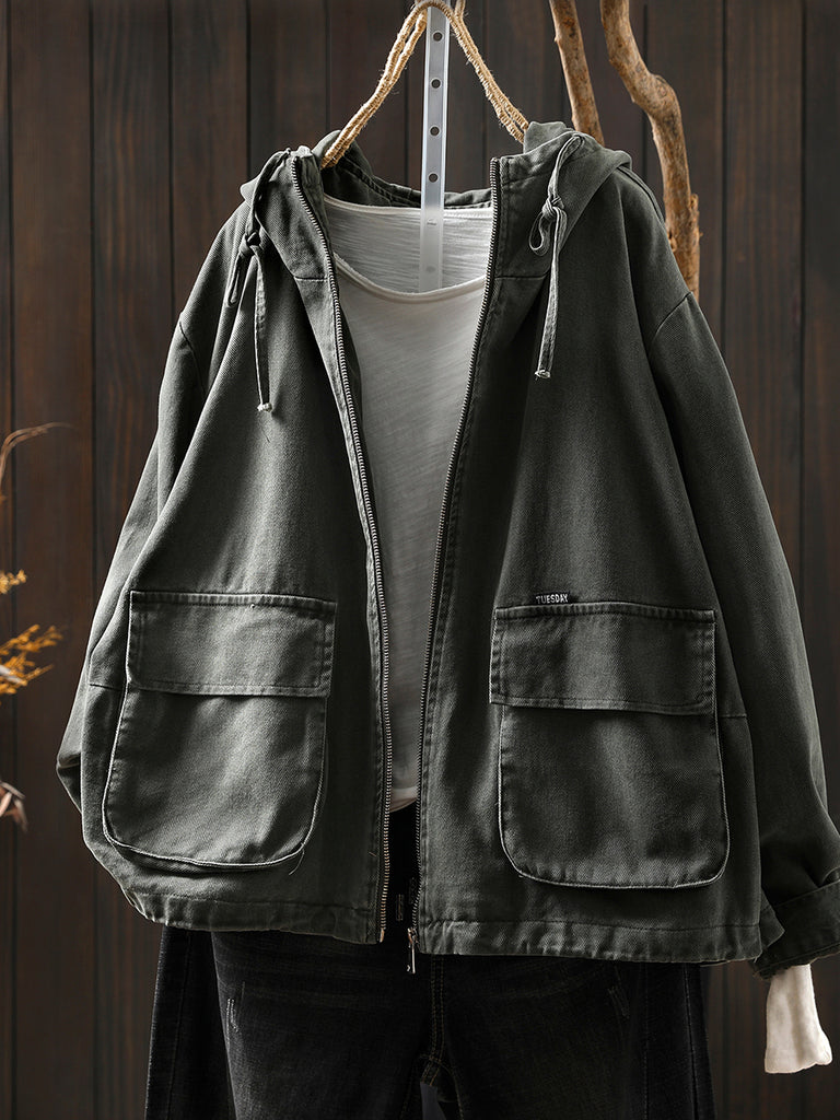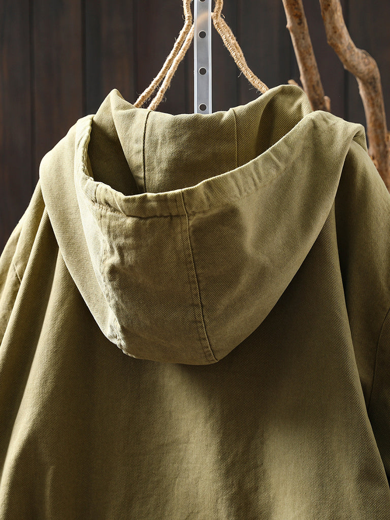 Women Autumn Pure Color Hooded Cotton Cardigan Coat