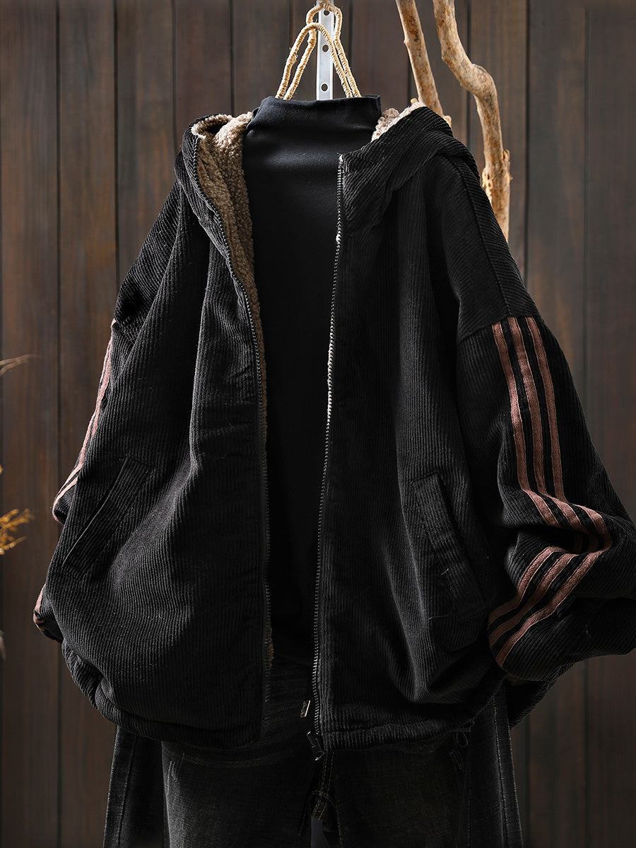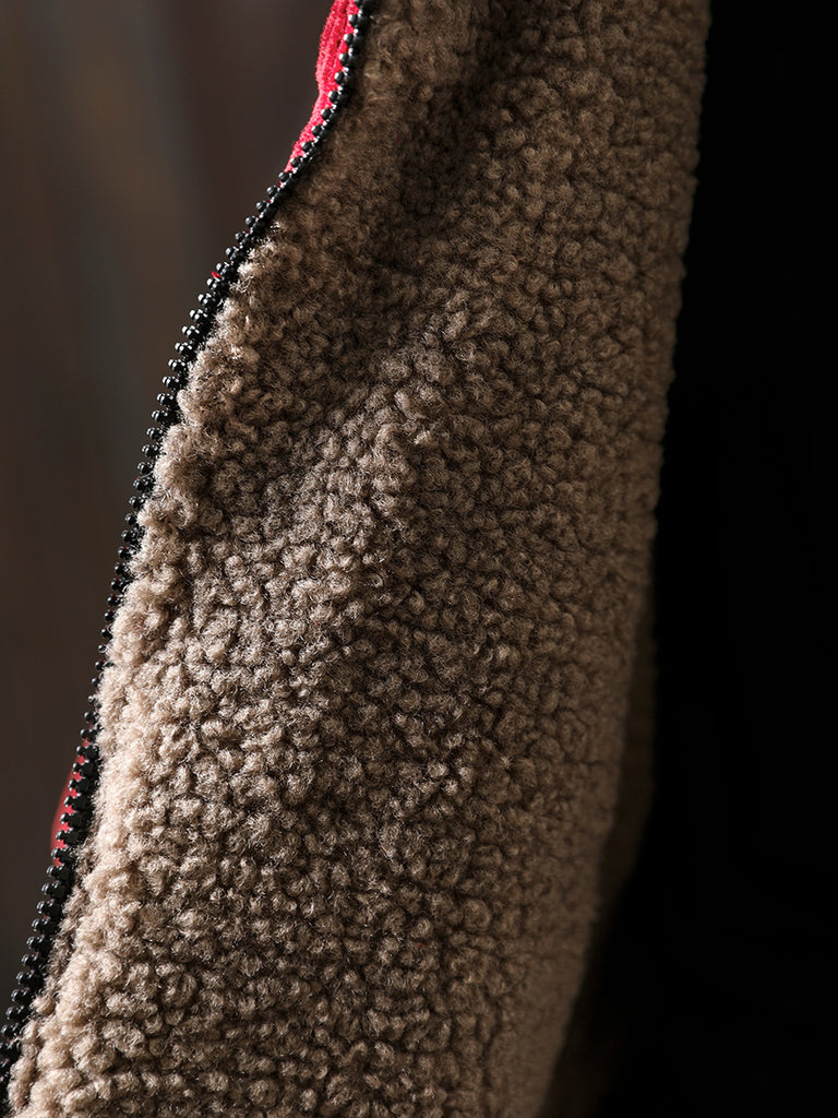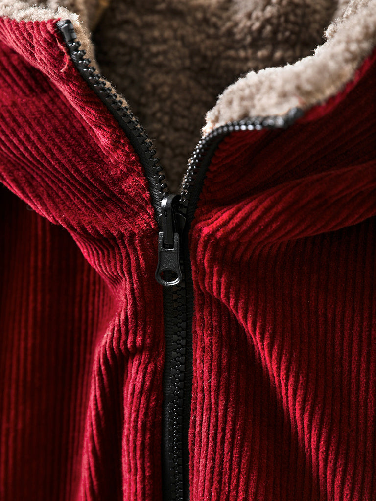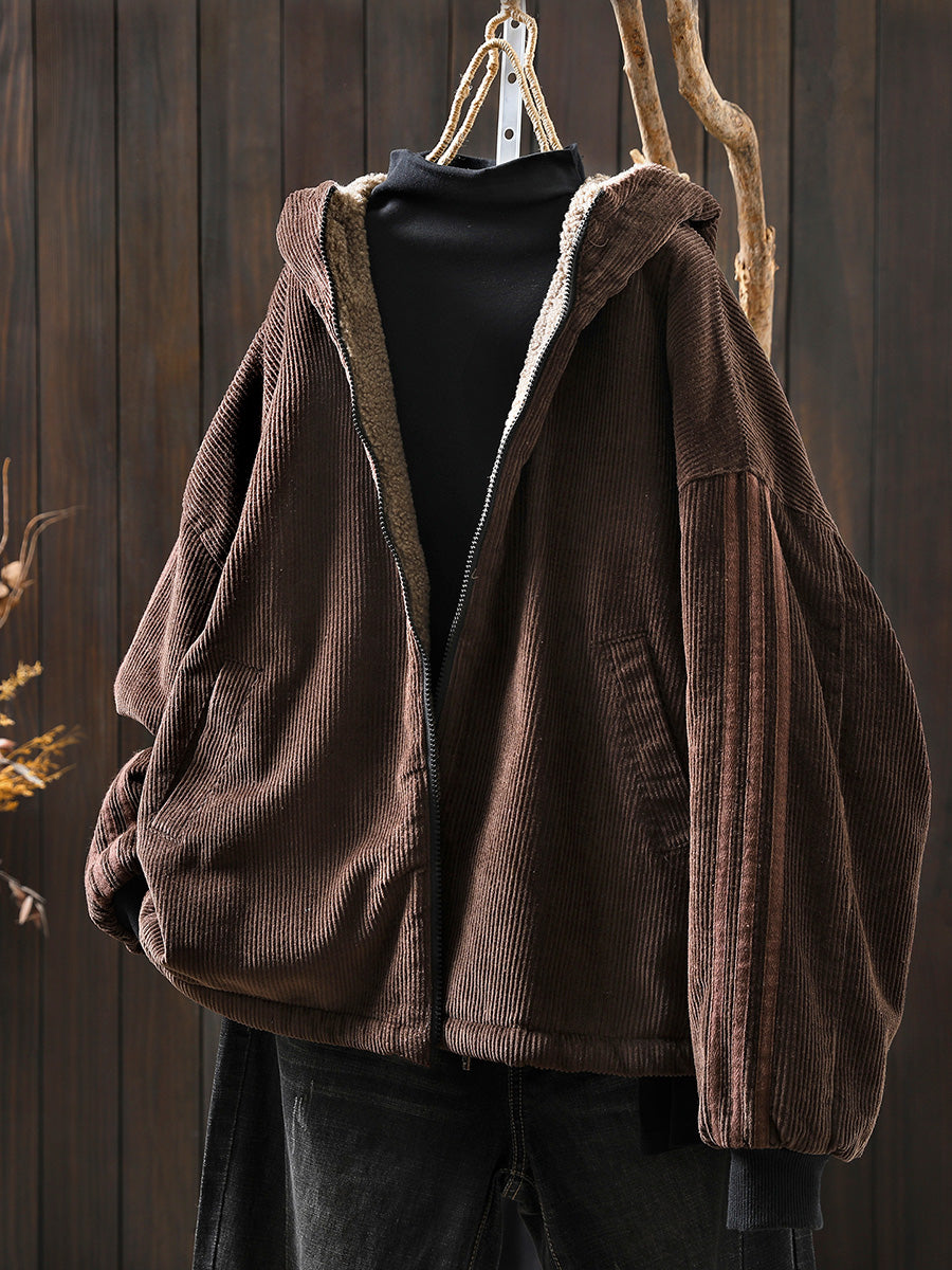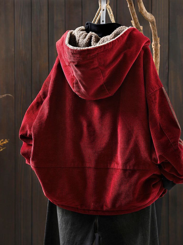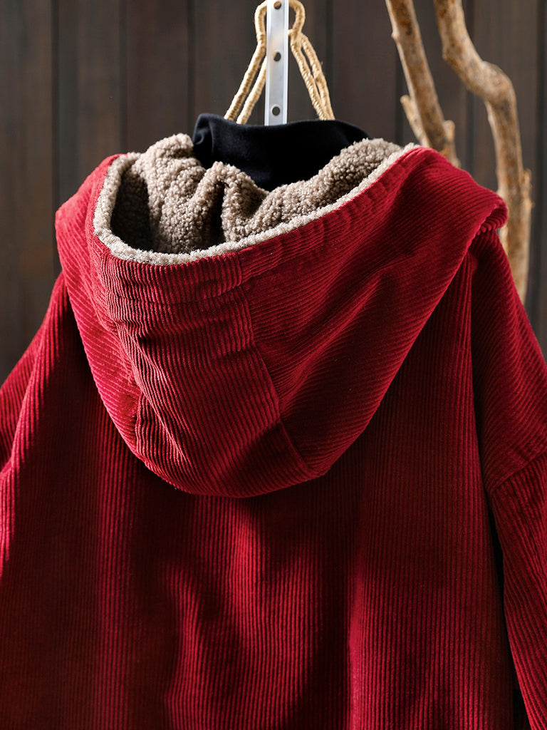 Women Autumn Retro Pure Color Hooded Fleece Coat