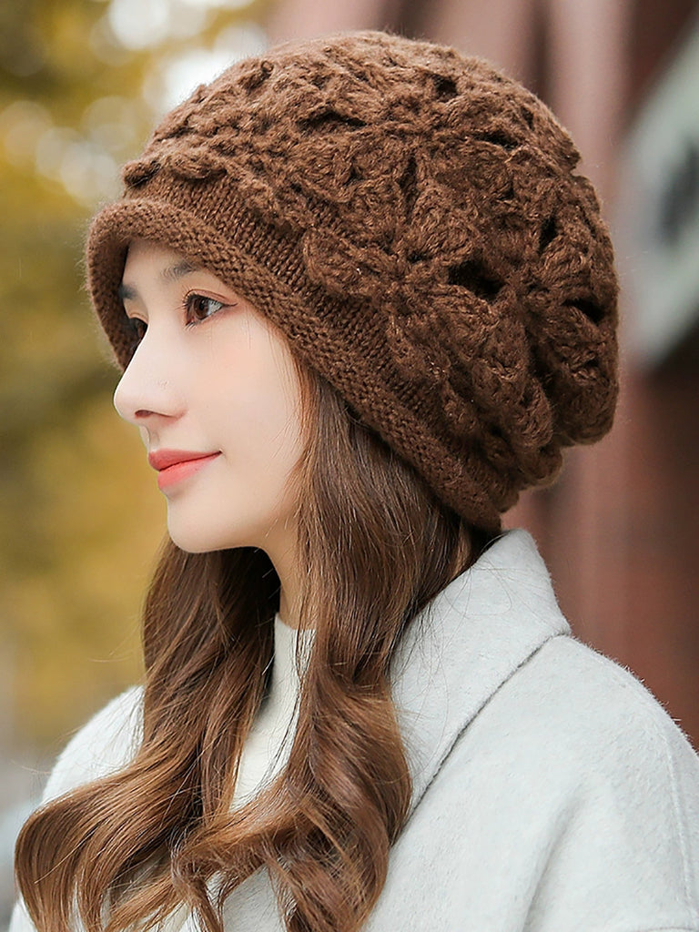 Women Casual Autumn Pure Color Warm Knitted Hat