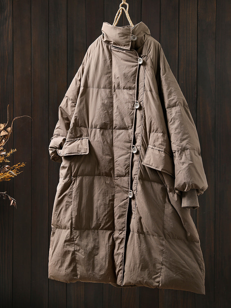 Women Autumn Casual Pure Color Stand Collar Down Coat
