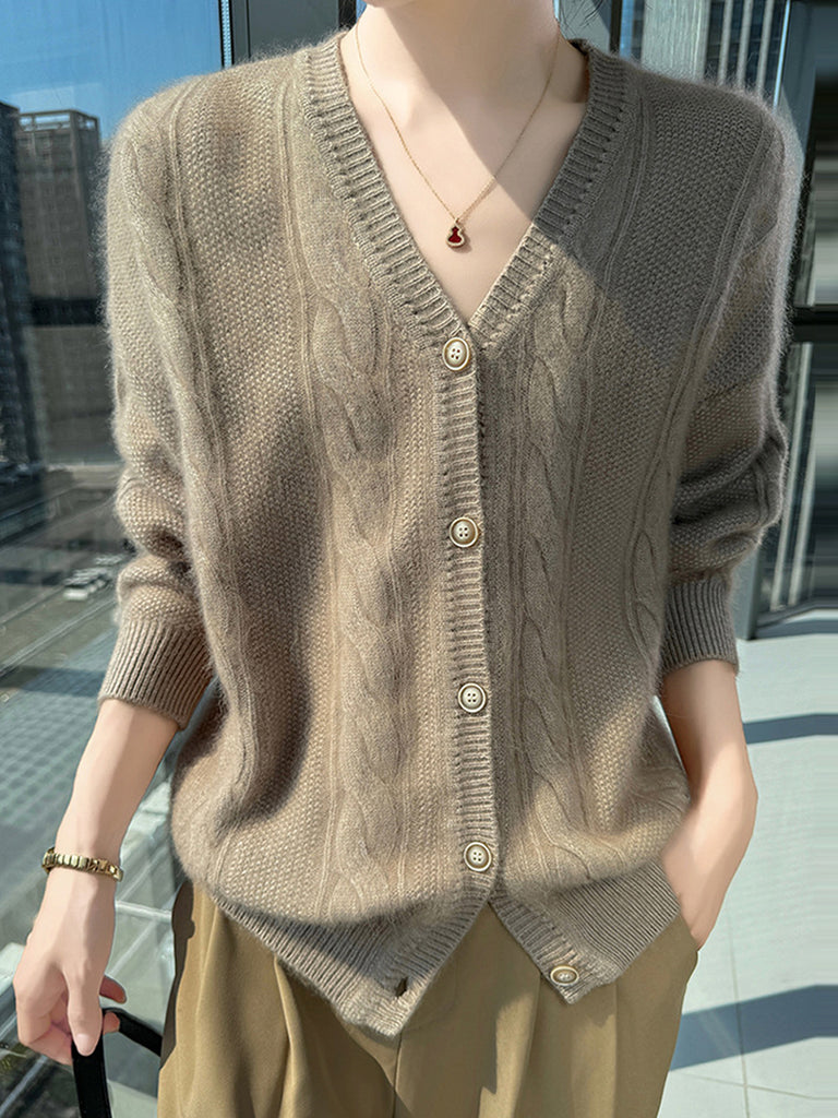 Women Autumn Casual Pure Color V-Neck Wool Sweater