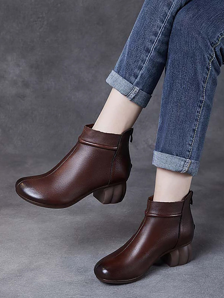 Women Vintage Genuine Leather Mid-Heel Ankle Boots