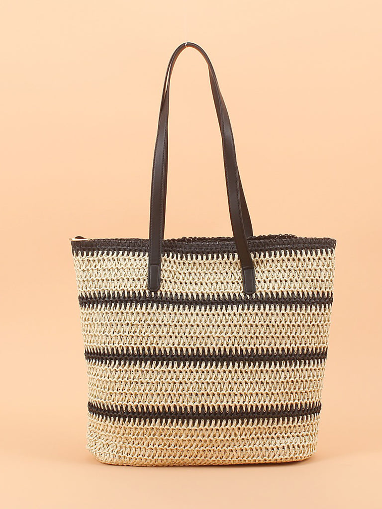 Women Fashion Colorblock Straw Weave Shoulder Bag