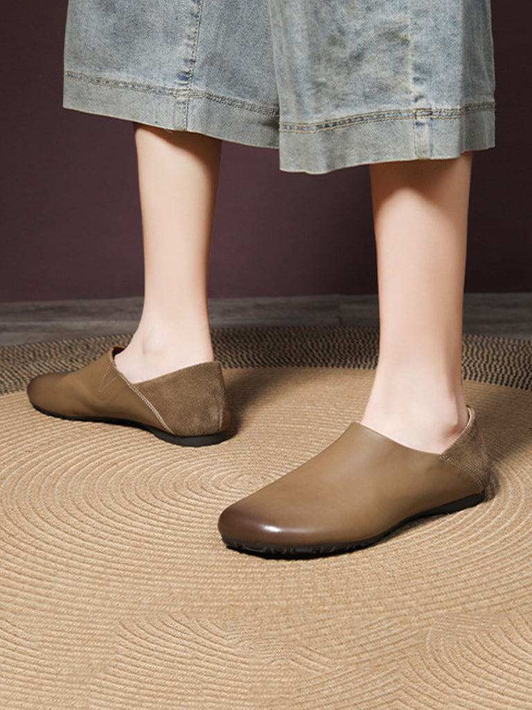 Women Casual Genuine Leather Colorblock Flat Shoes