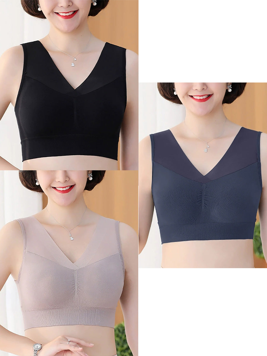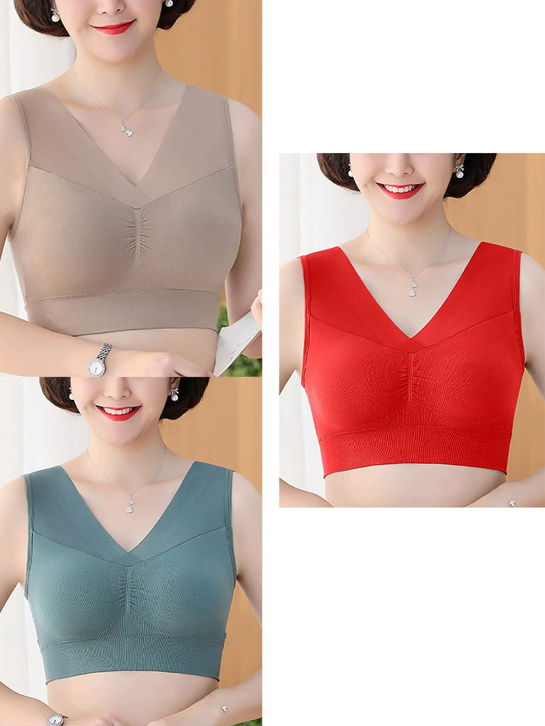 3 Pieces Women One-Piece With Bra Pad Pure Color Bar