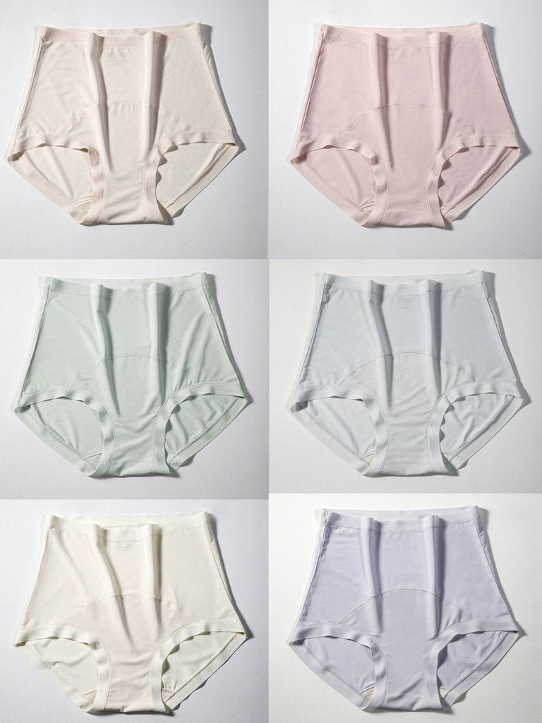 6 Pieces Summer Women High Waist Pure Color Underwear