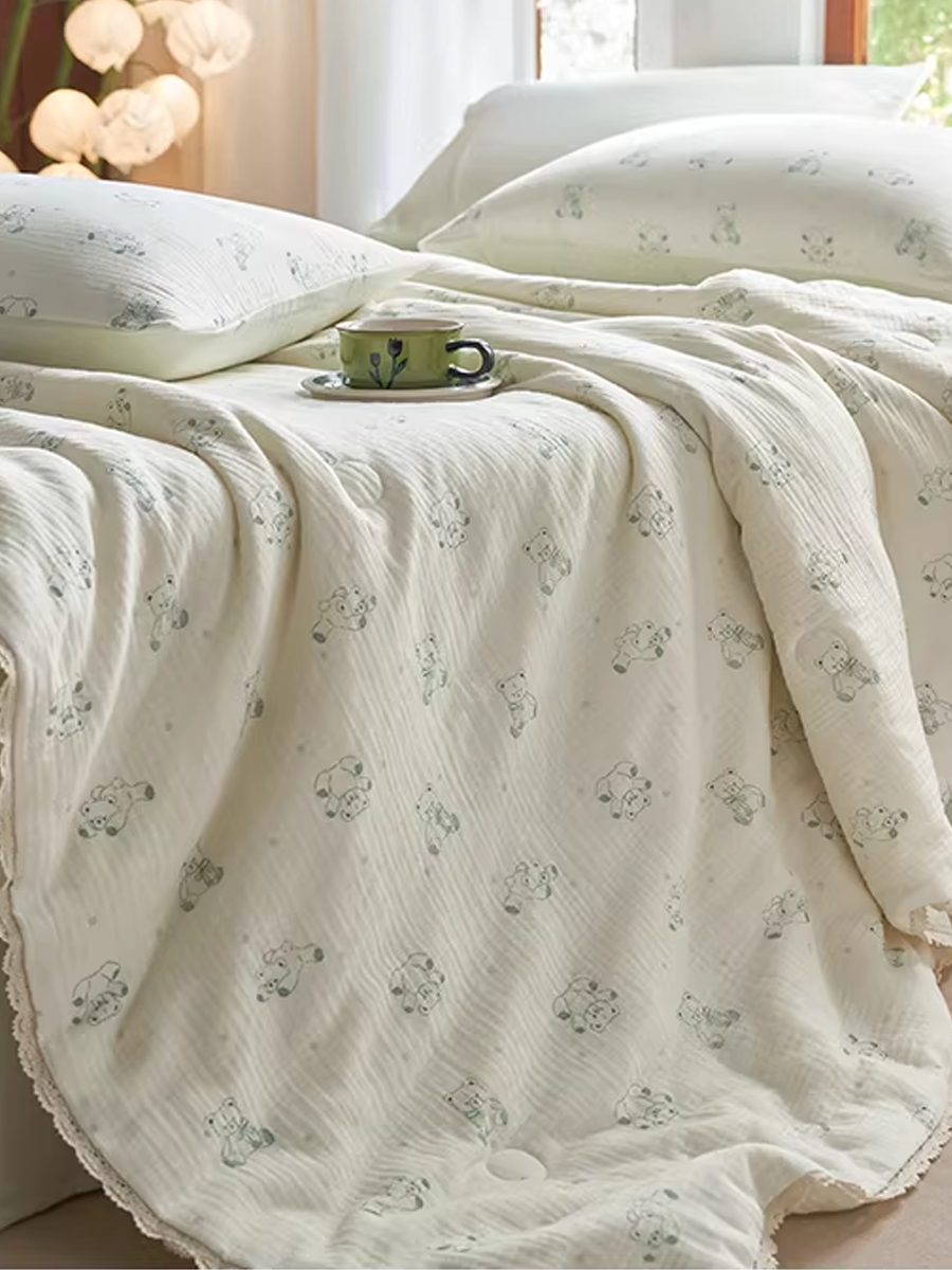 Pink Bear Retro Misty Gauze Summer Quilt