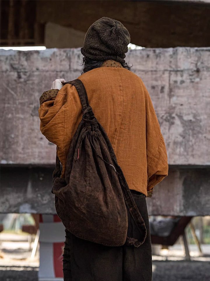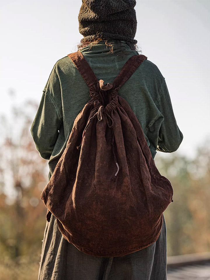 Vintage Plant-dyed Linen Large Capacity Backpack