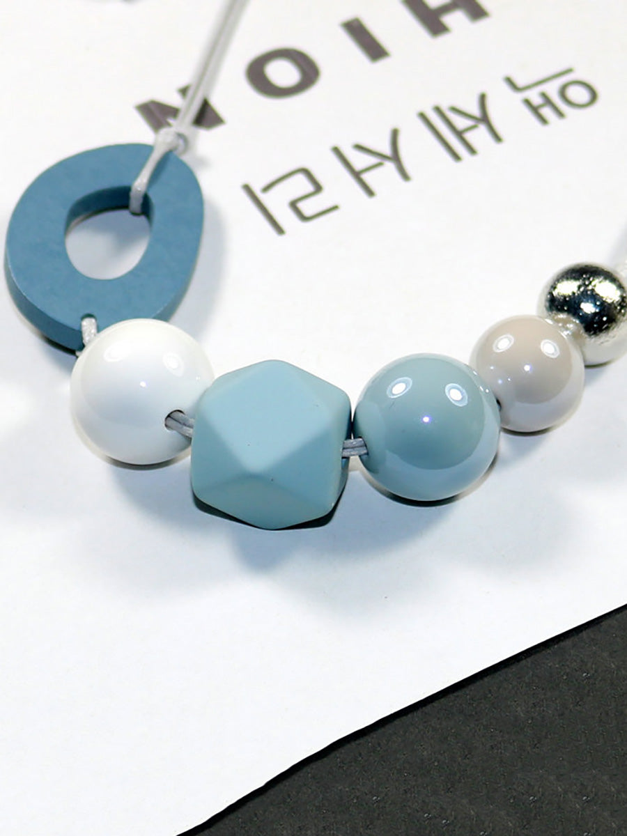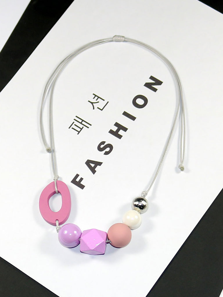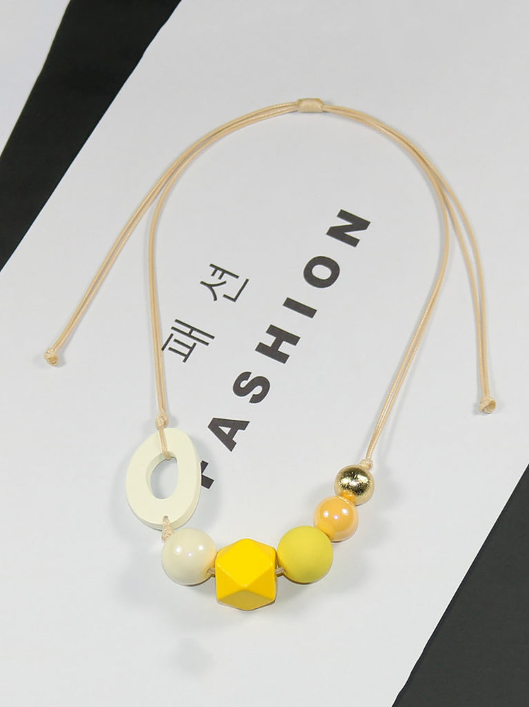 Women Artsy Geometric Wood Acrylic Copper Weave Necklace
