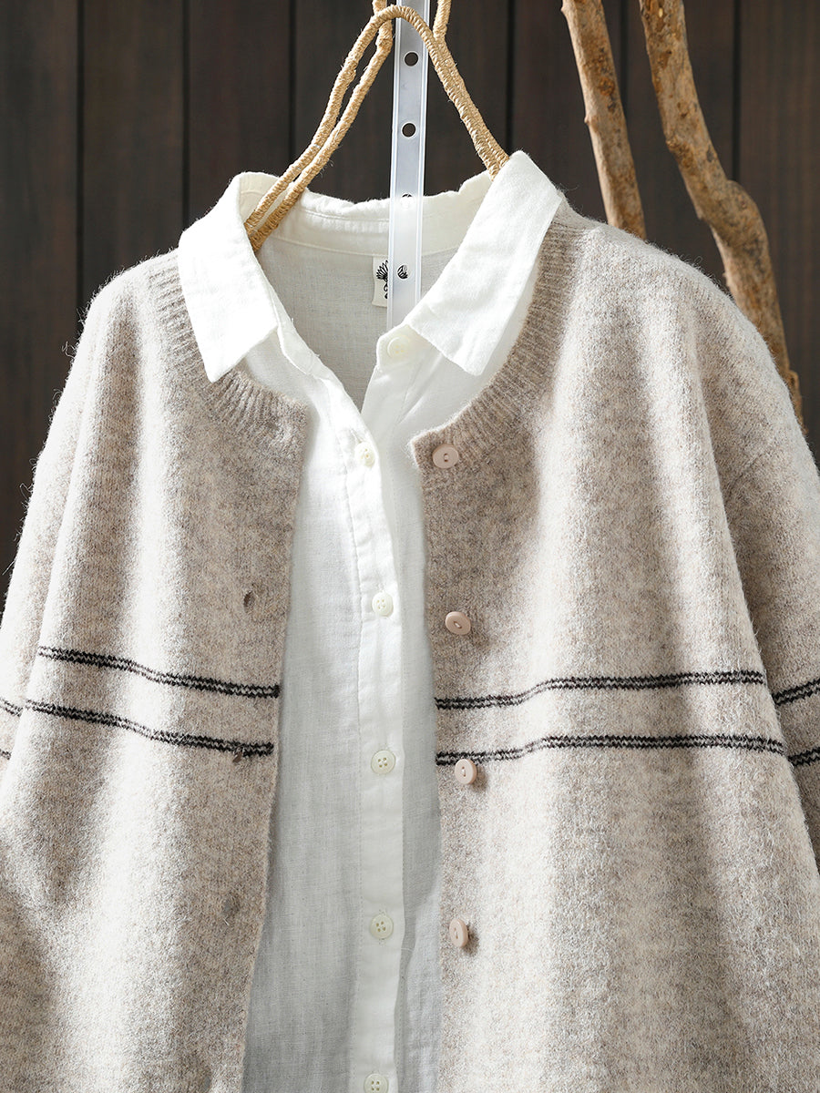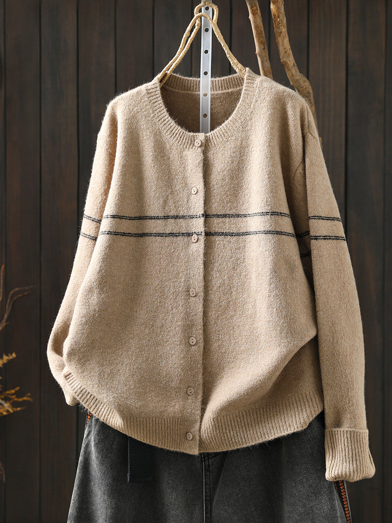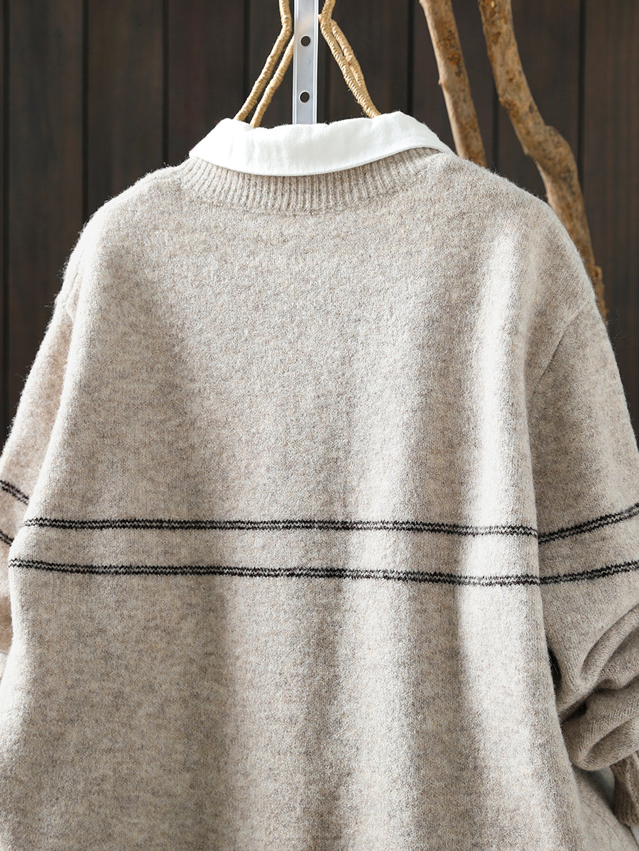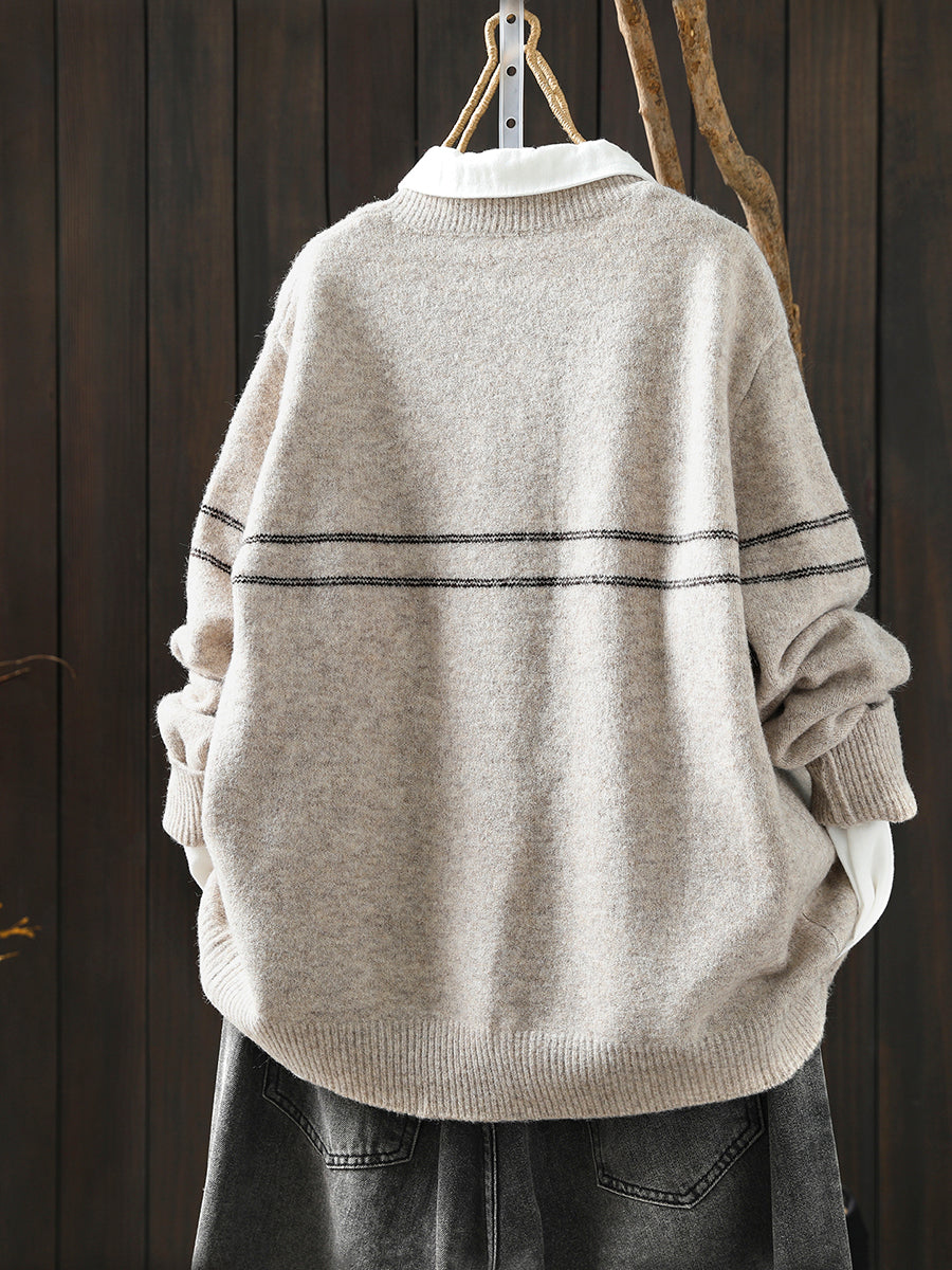 Women Autumn Artsy Stripe Knitted O-Neck Sweater
