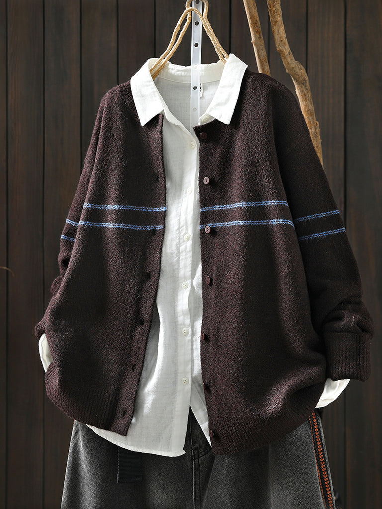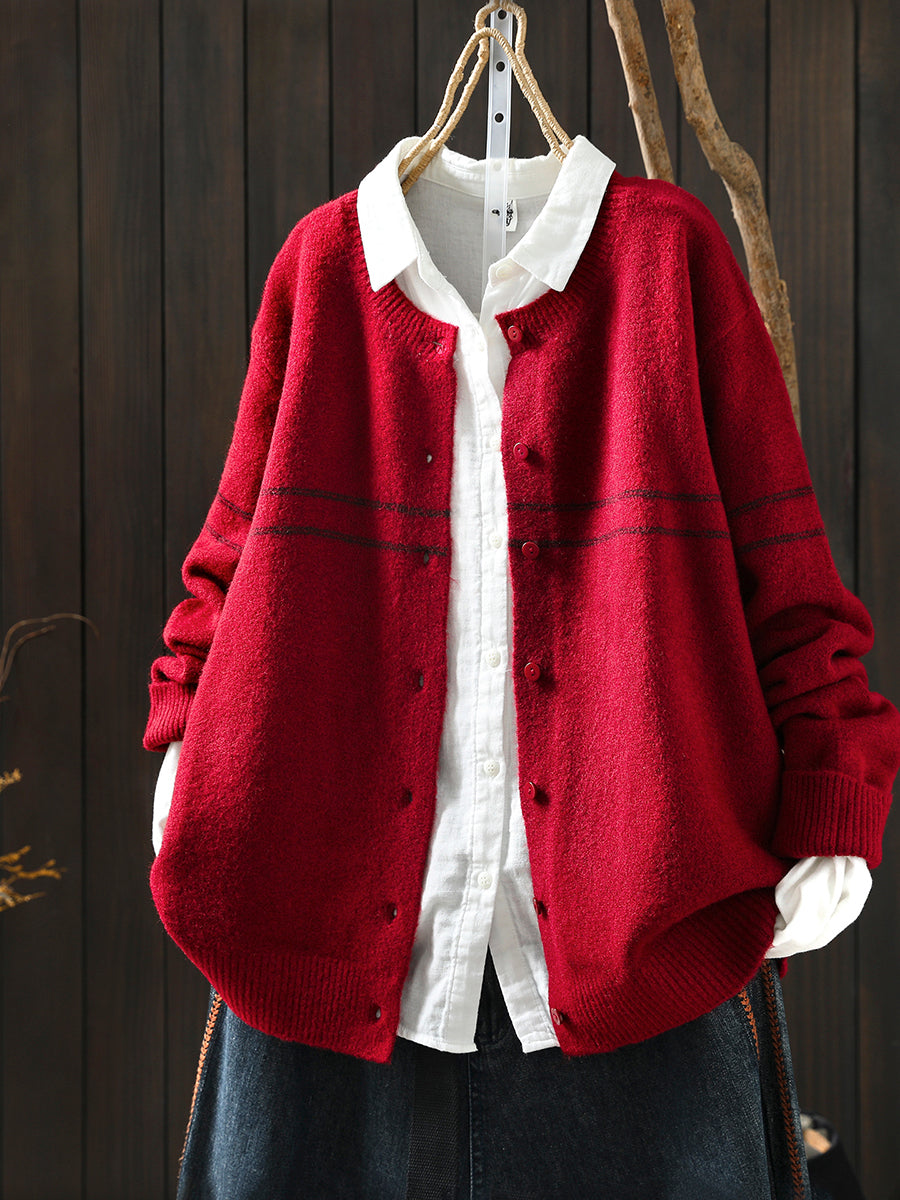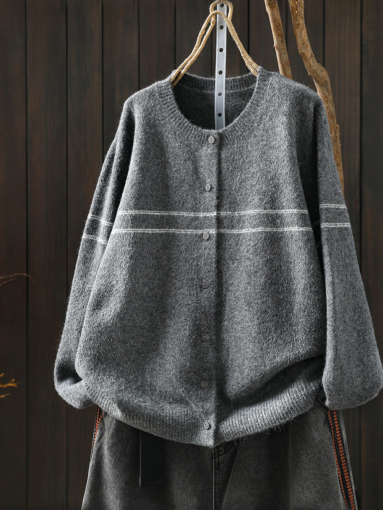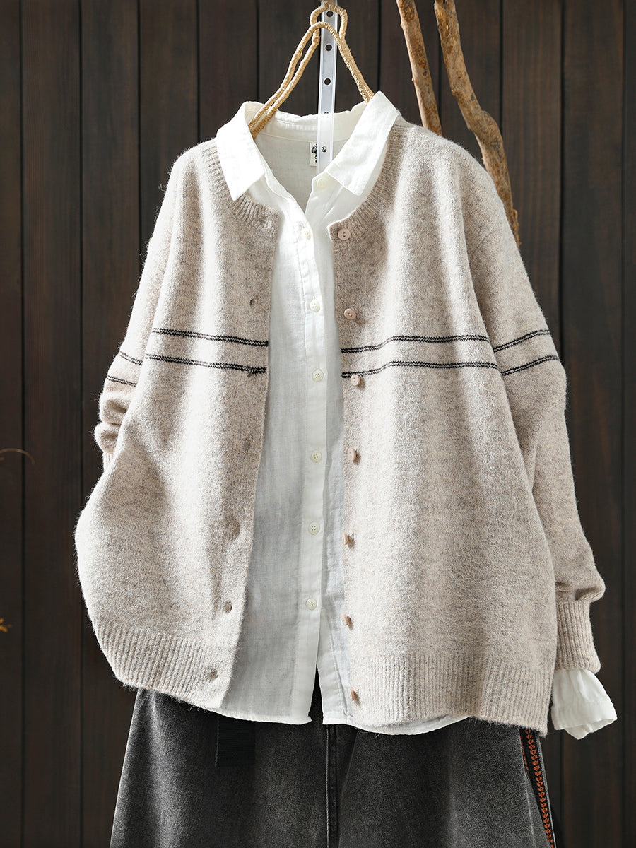 Women Autumn Artsy Stripe Knitted O-Neck Sweater
