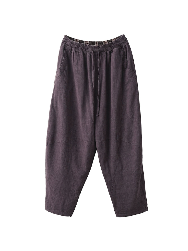 Women Autumn Dual-side Wearring 100%Linen Harem Pants