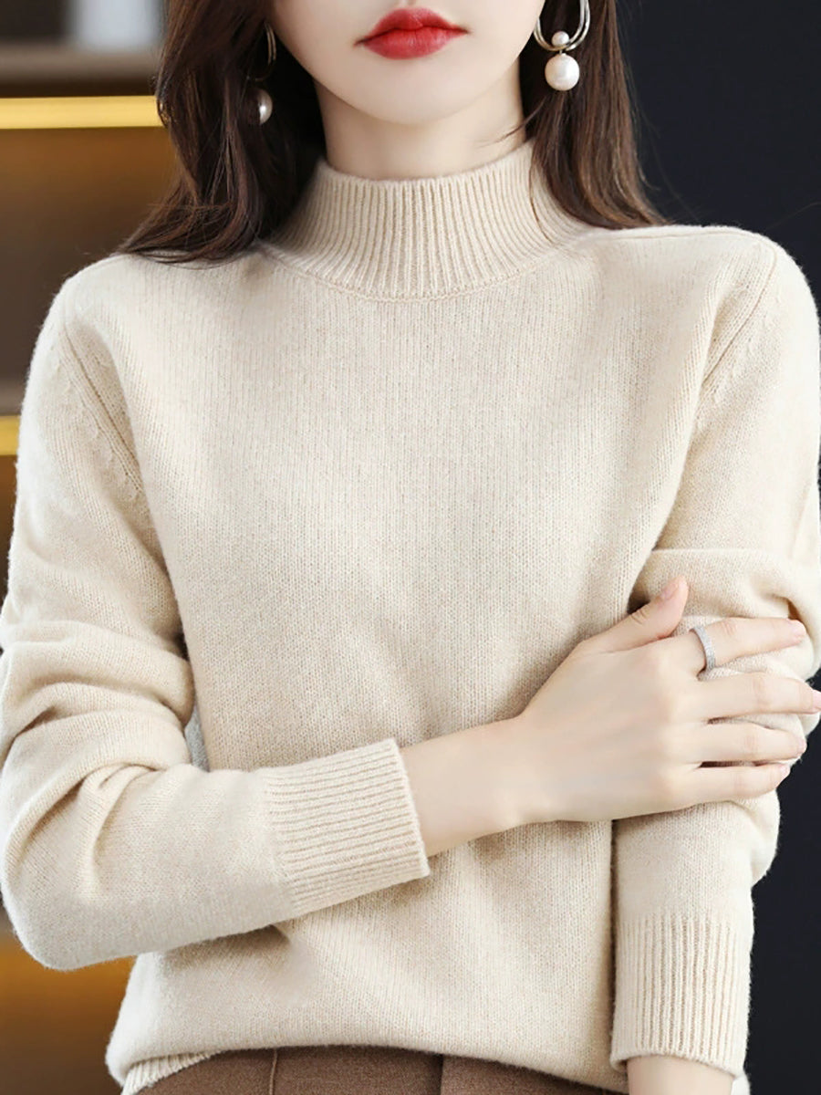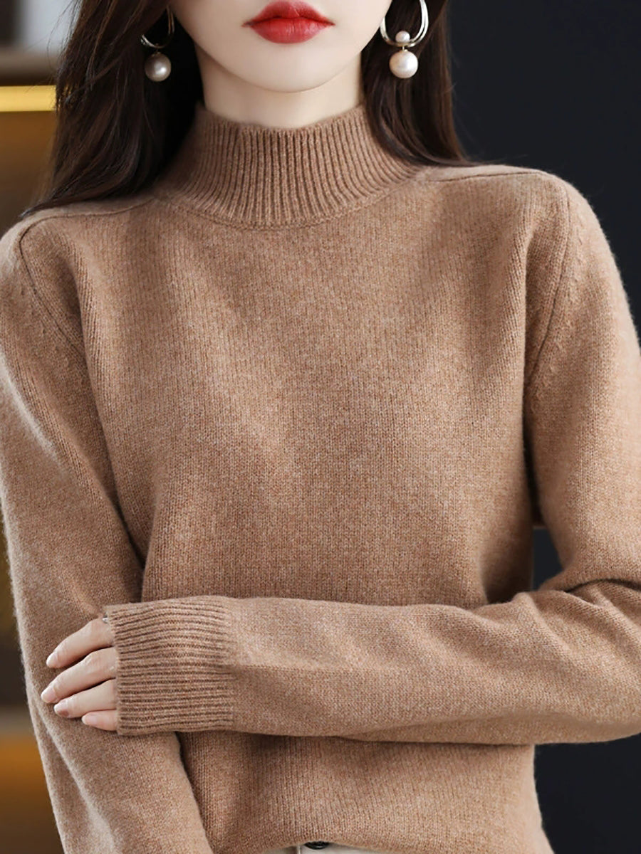 Women Casual Winter Pure Color Half-Turtleneck Sweater