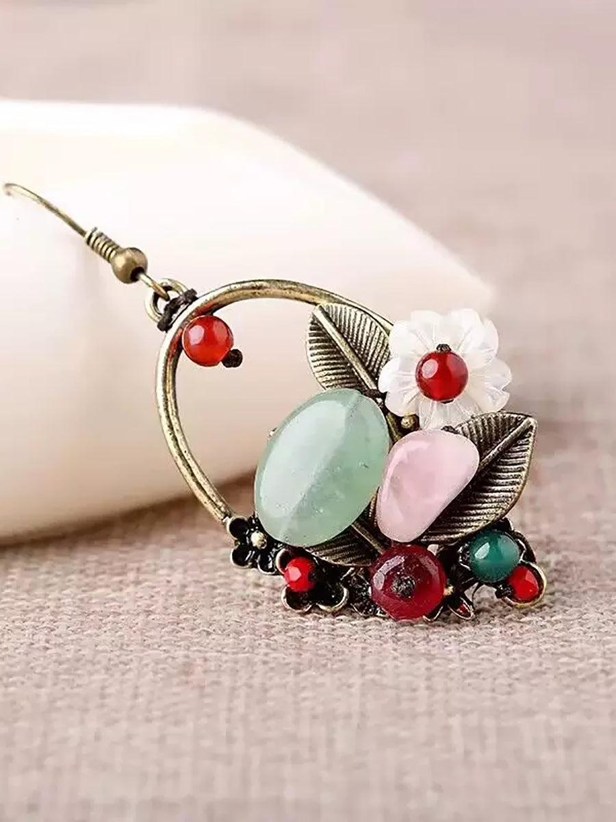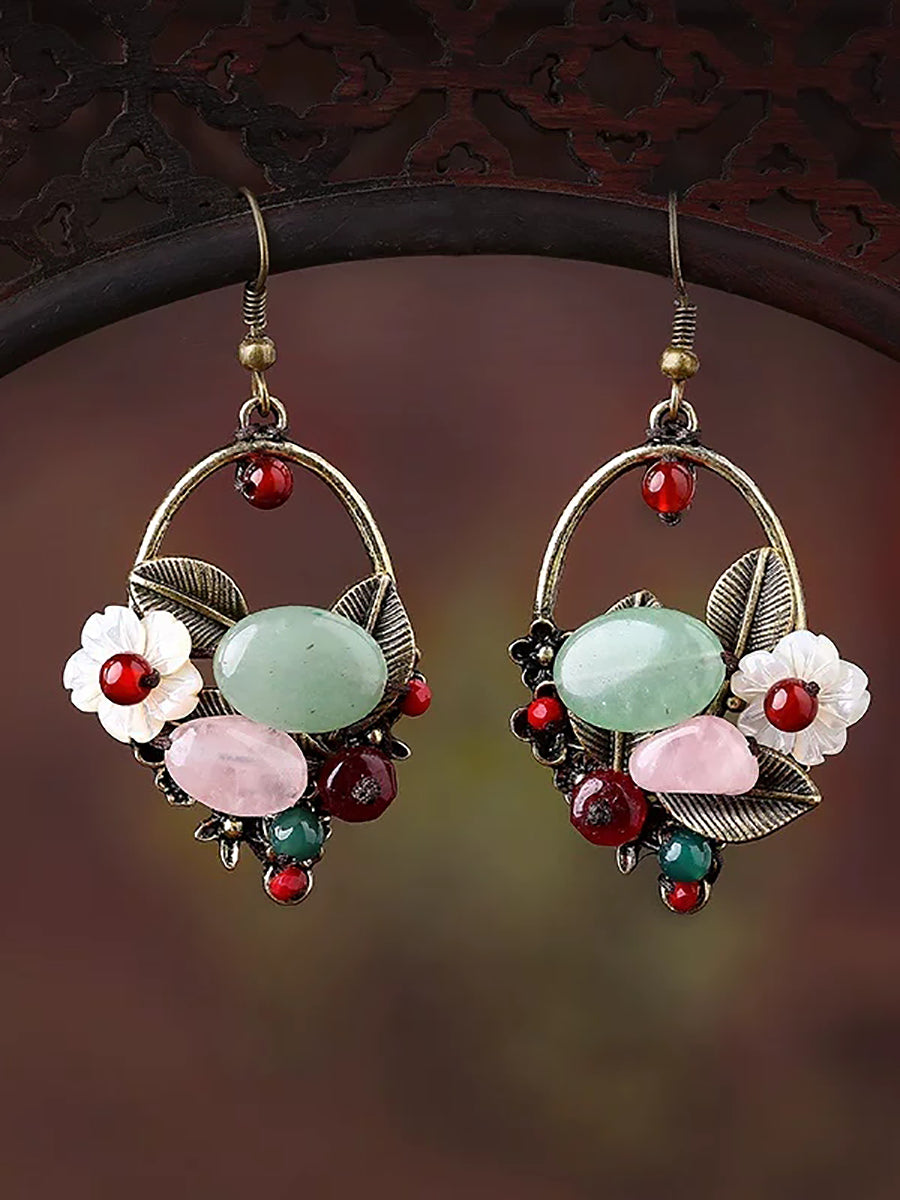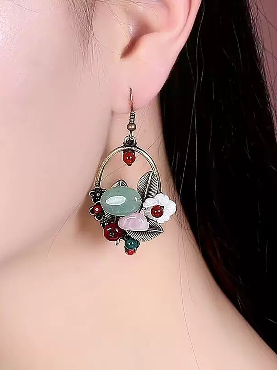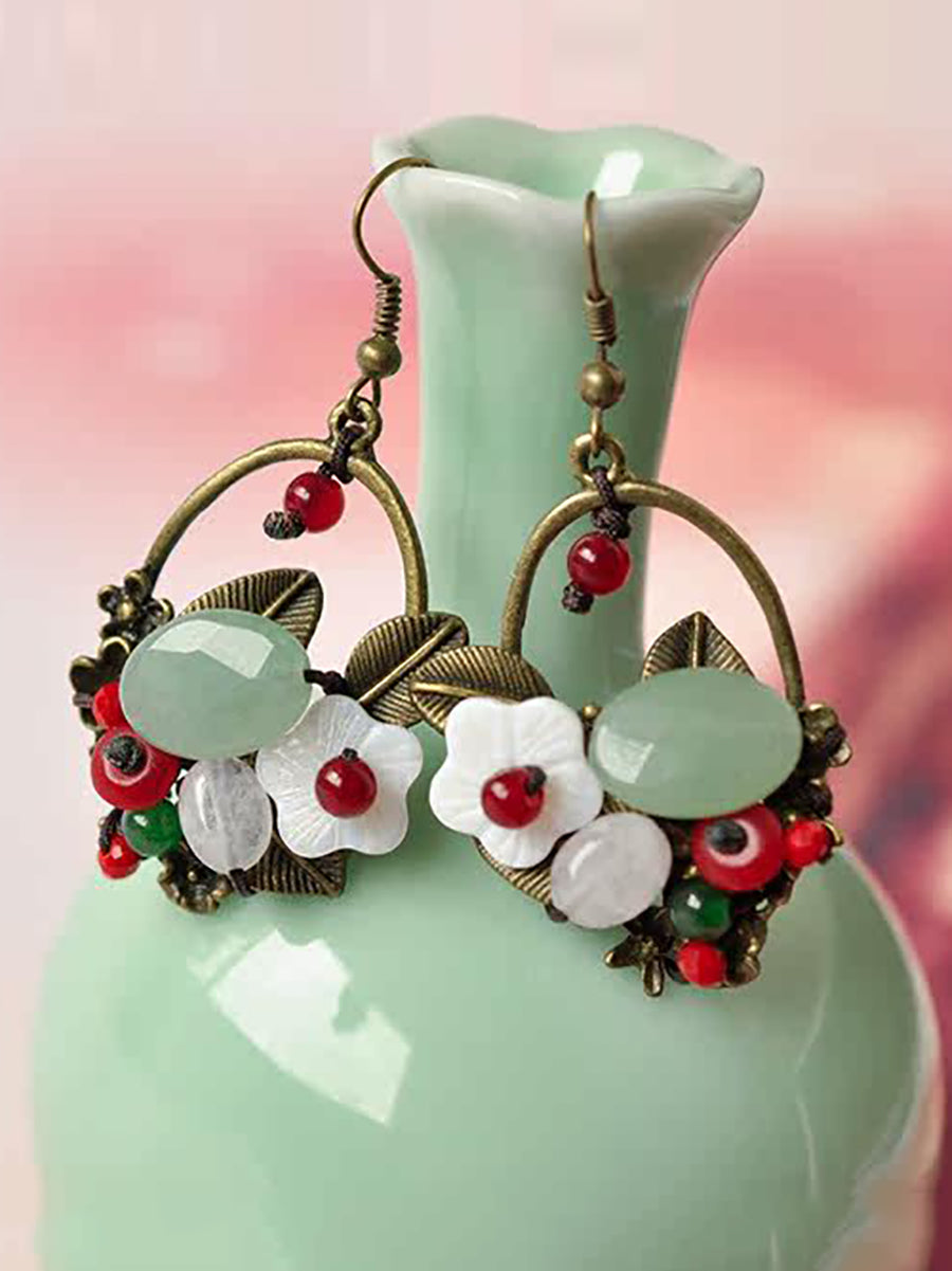 Women Ethnic Jade Alloy Shell Earrings