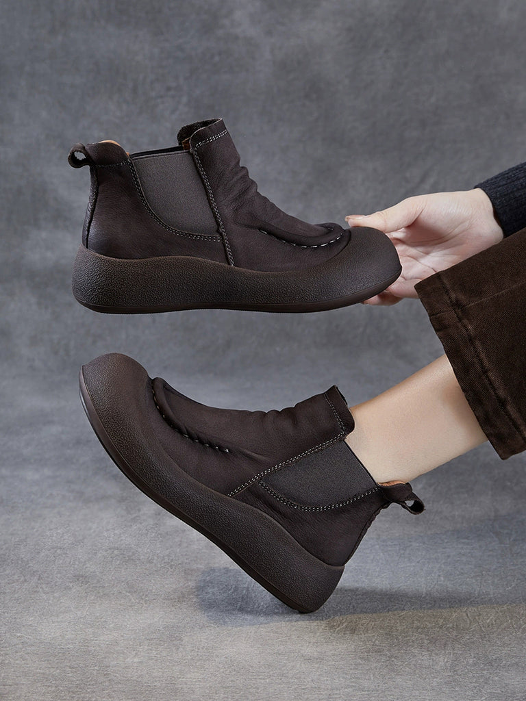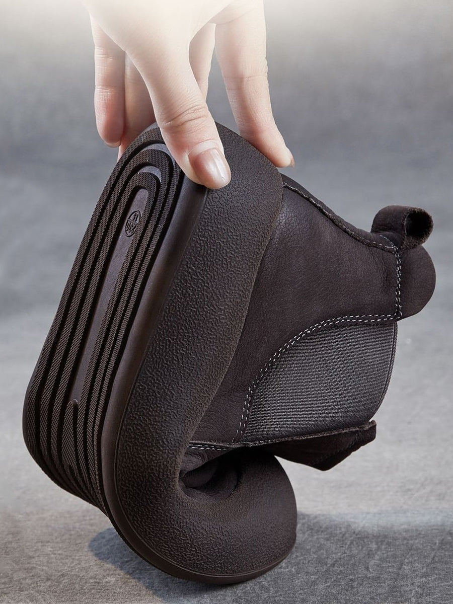 Women Retro Genuine Leather Spliced Ankle Boots