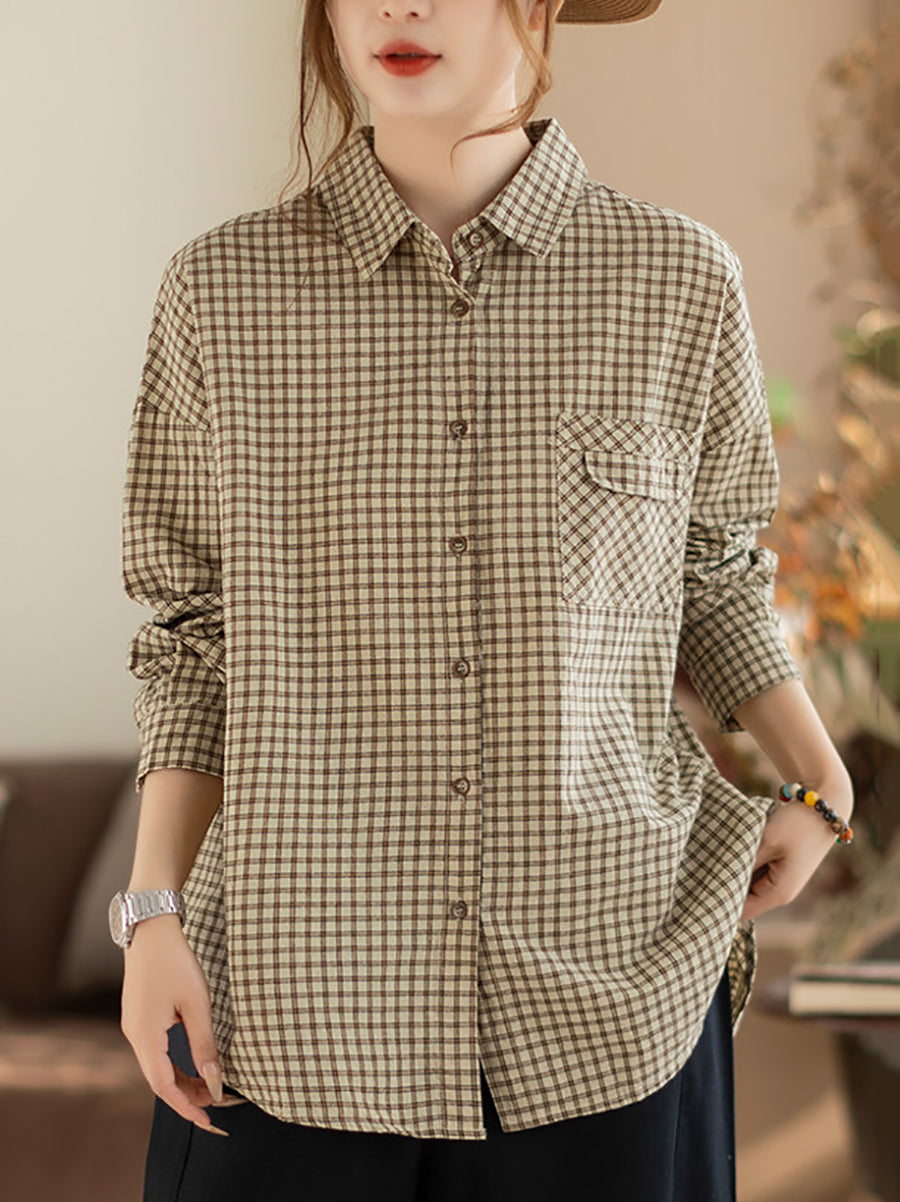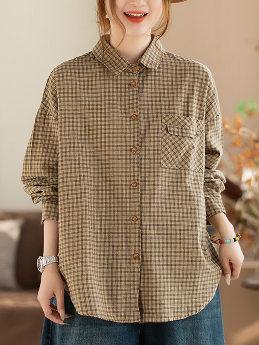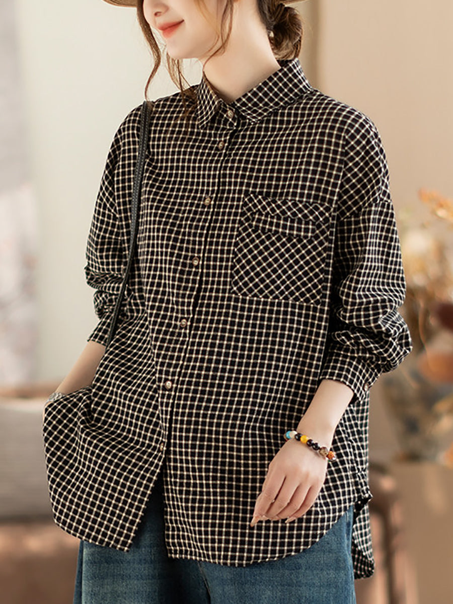 Women Spring Artsy Lattice Turn-down Colalr Shirt