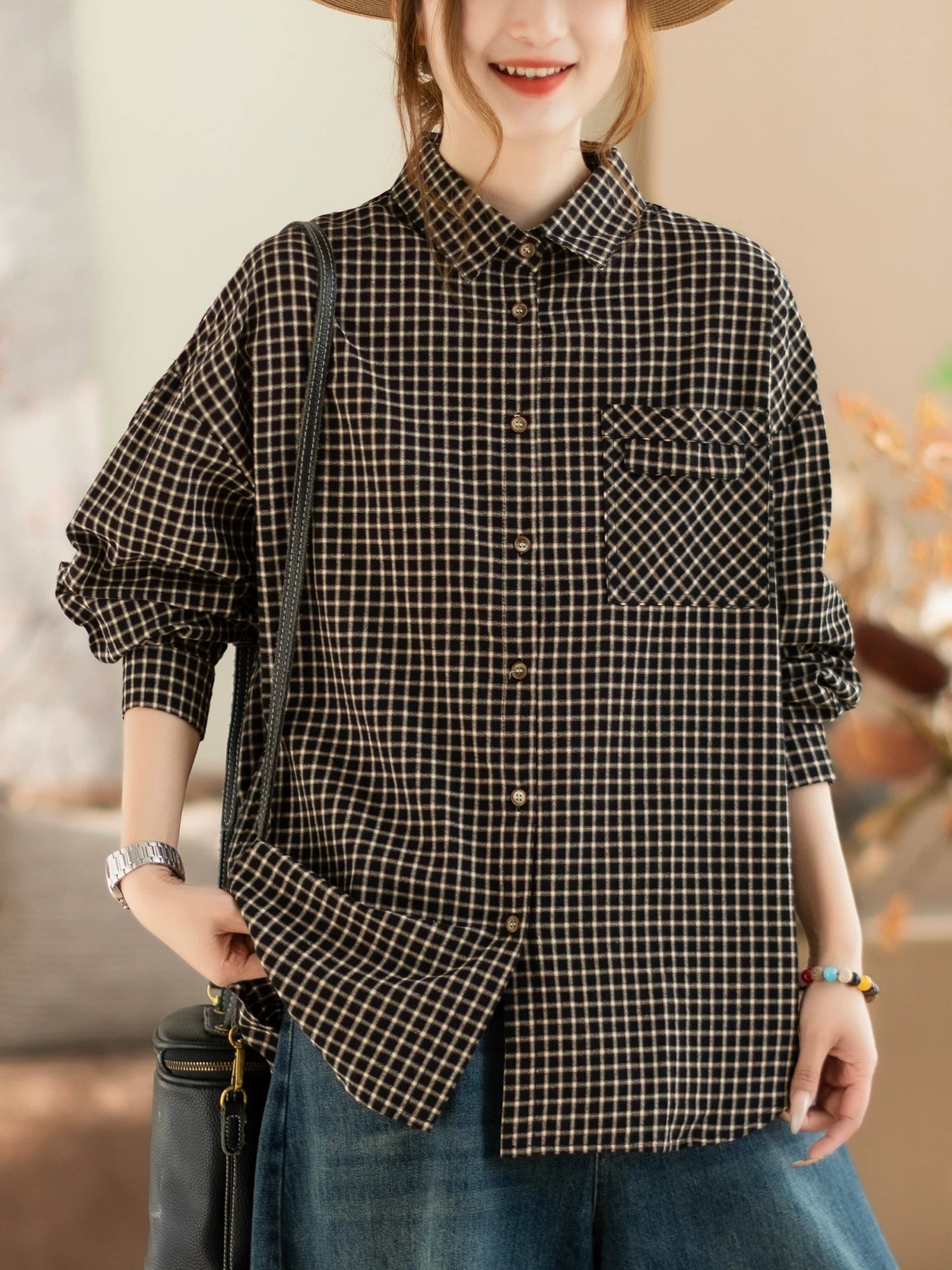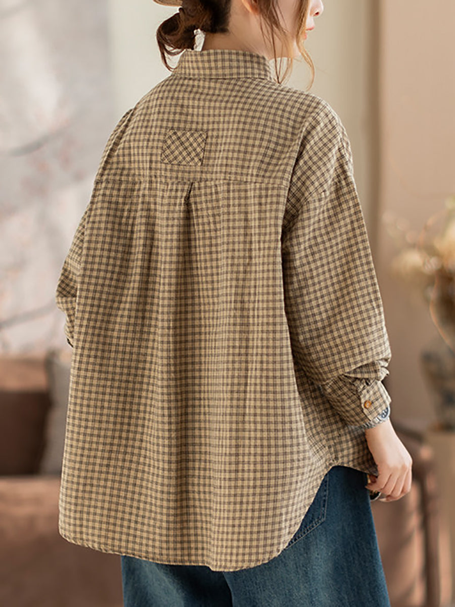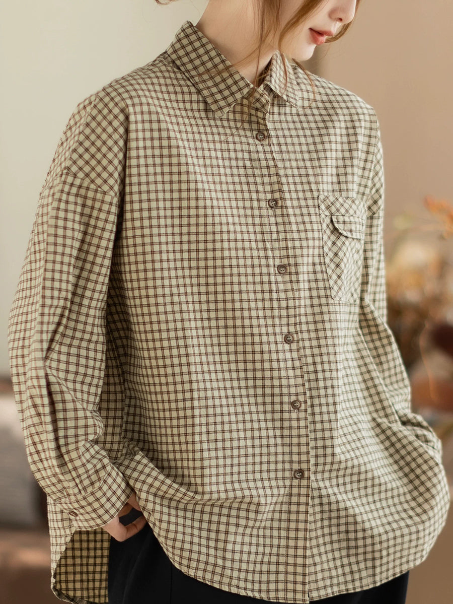 Women Spring Artsy Lattice Turn-down Colalr Shirt