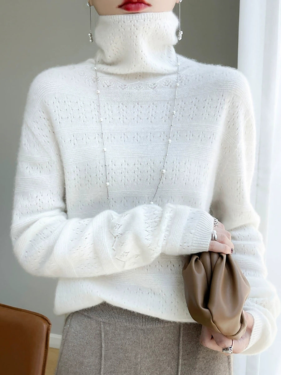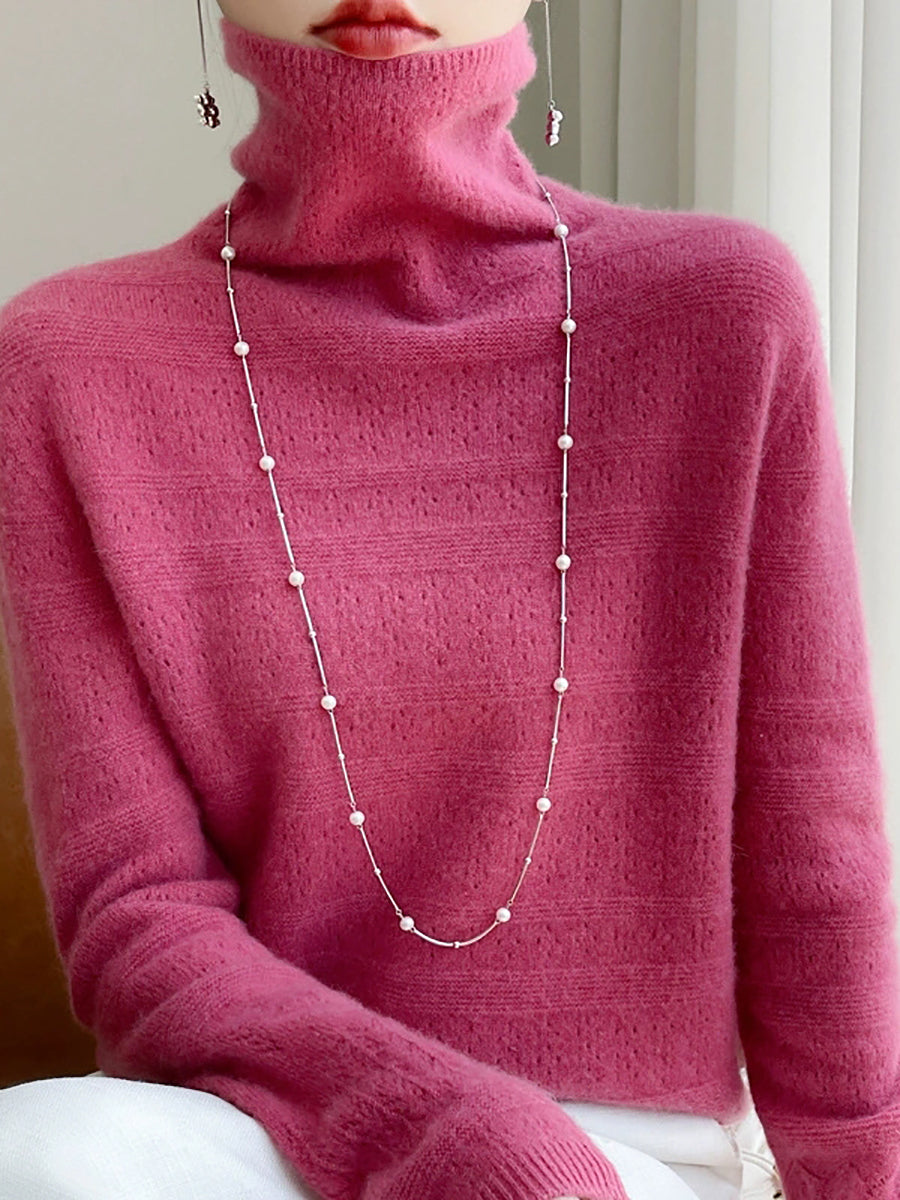 Women Spring Casual Pure Color Turtleneck Sweater