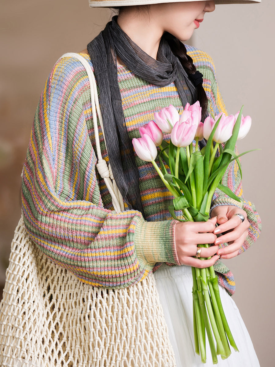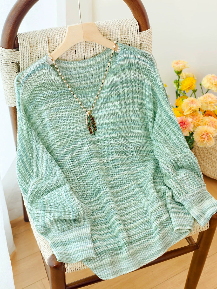 Women Spring Casual Stripe Knitted O-Neck Blouse