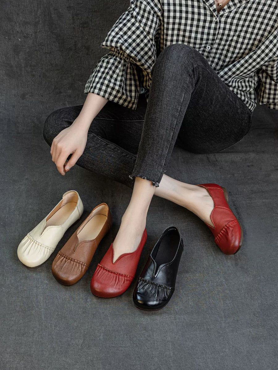 Women Spring Genuine Leather Spliced Low Heel Shoes