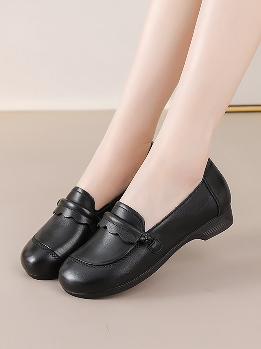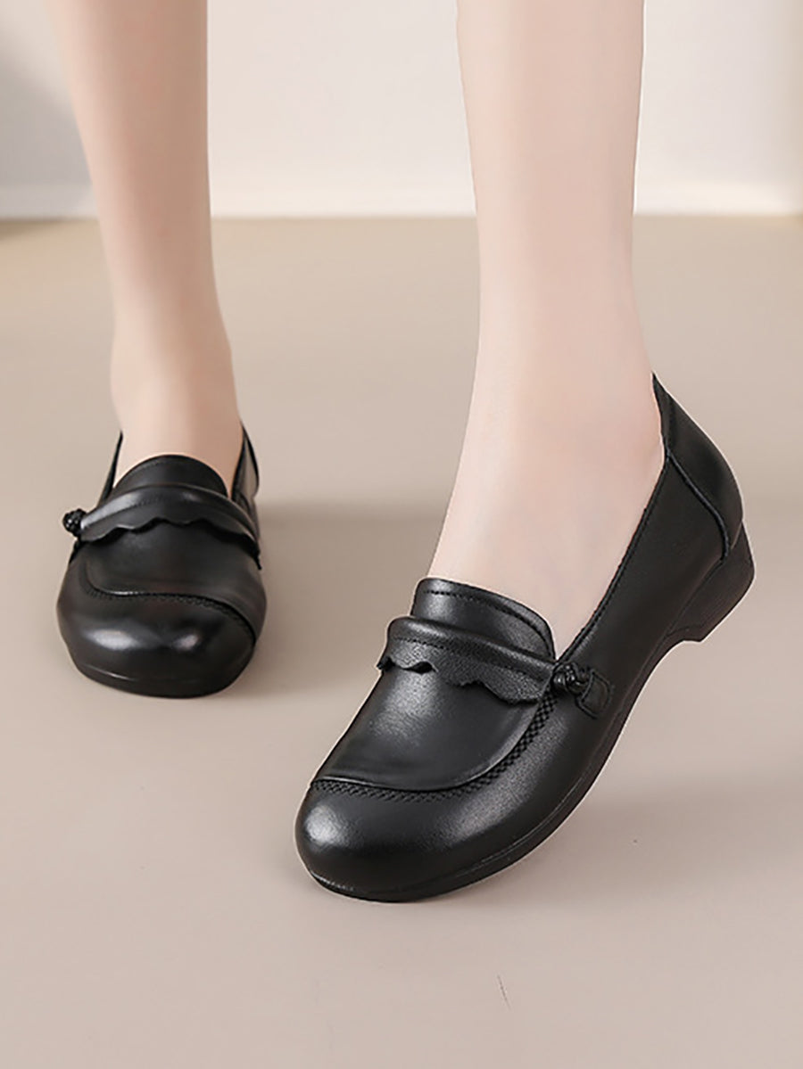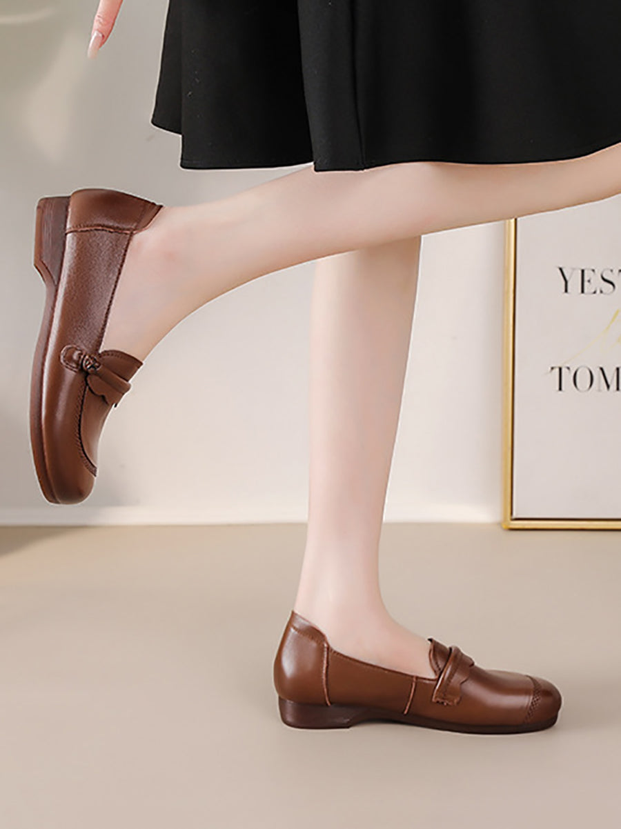 Women Spring Genuine Leather Spliced Low Heel Shoes