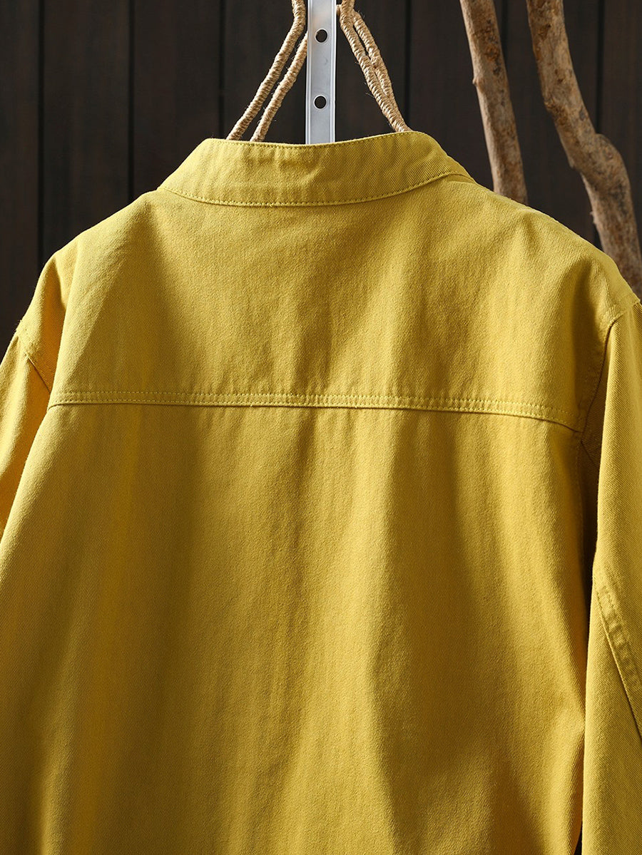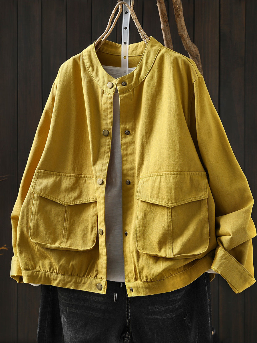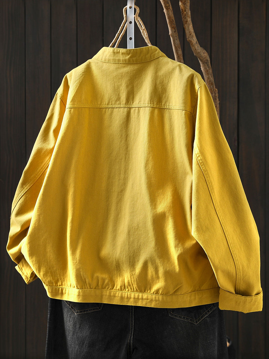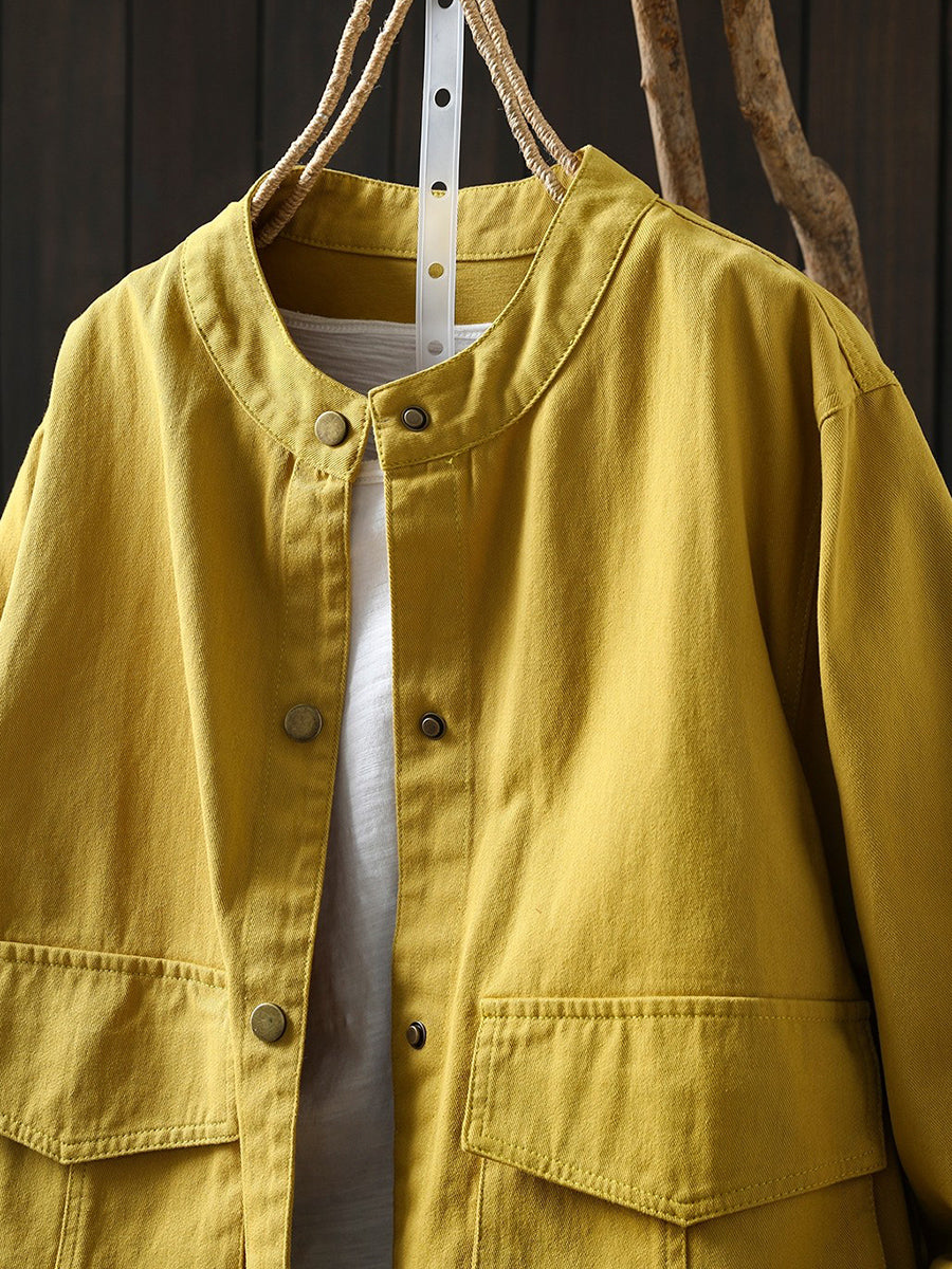 Women Spring Pure Color Stand Collar 100%Cotton Coat