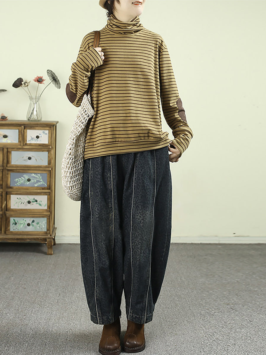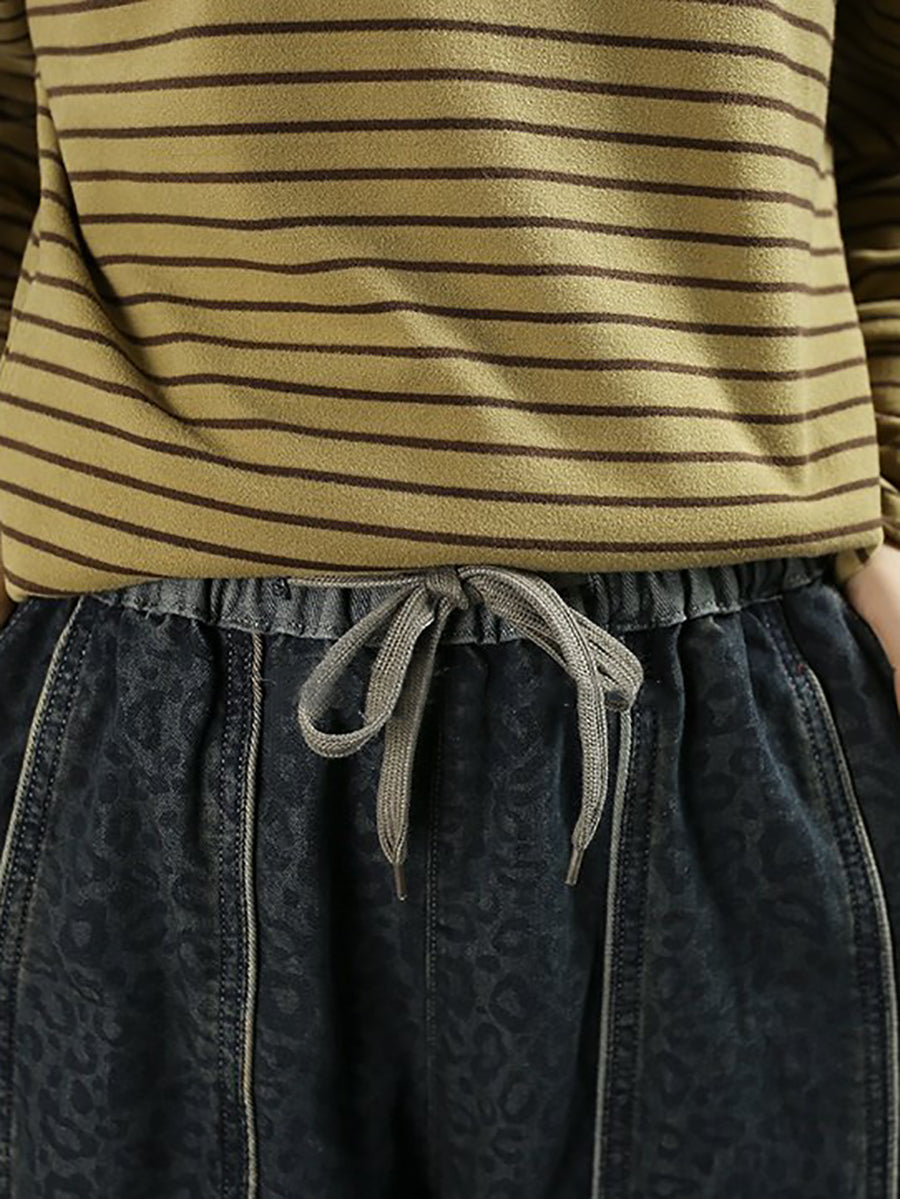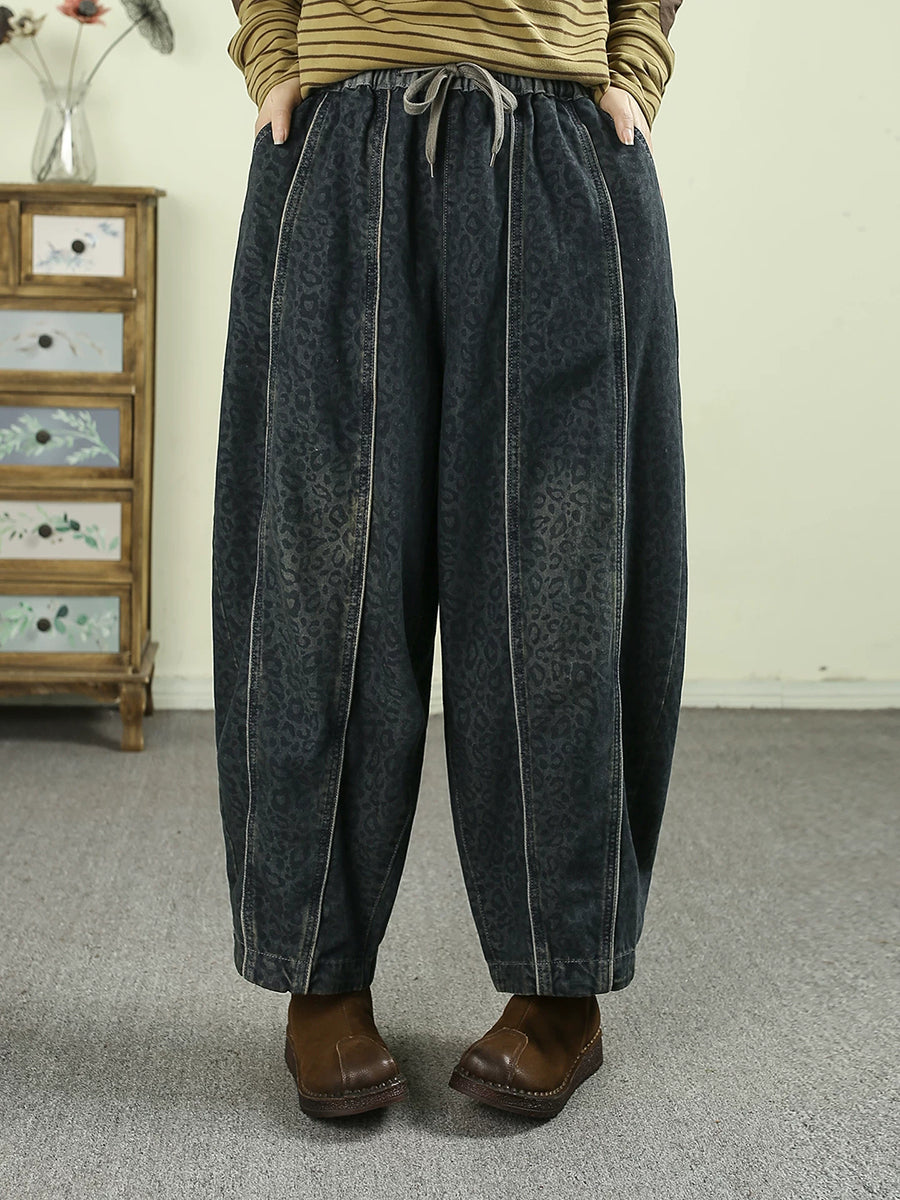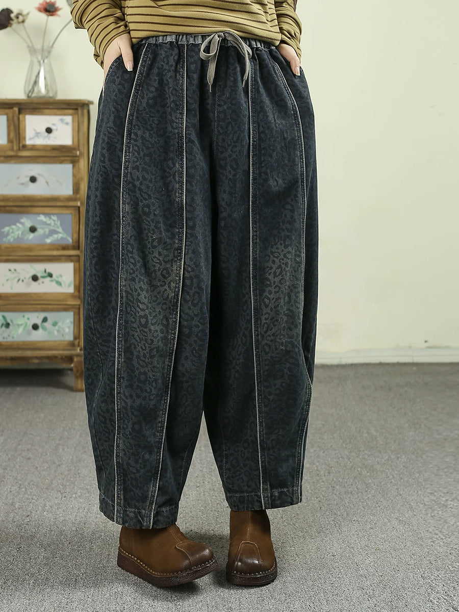 Women Spring Vintage Denim Leopard Harem Pants