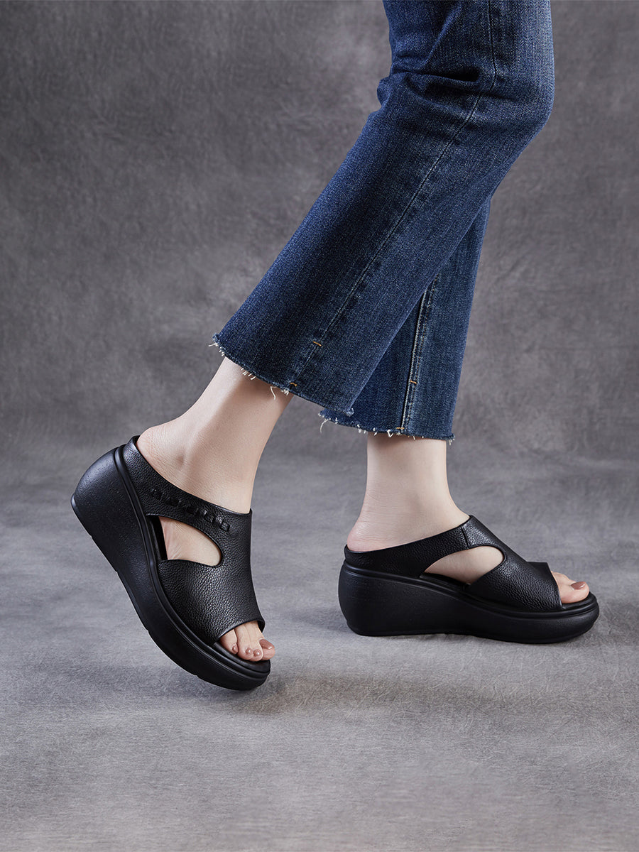 Women Summer Casual Genuine Leather Platform Sandals