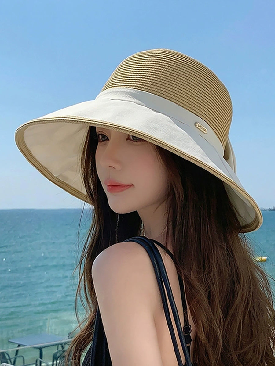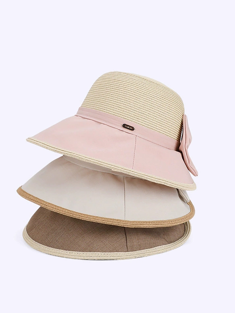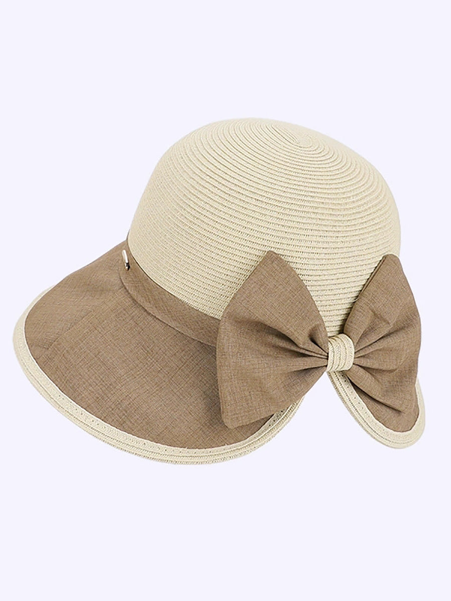 Women Summer Colorblock Bowknot Sunproof Hat