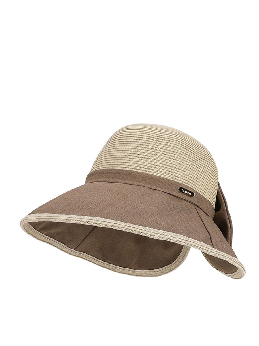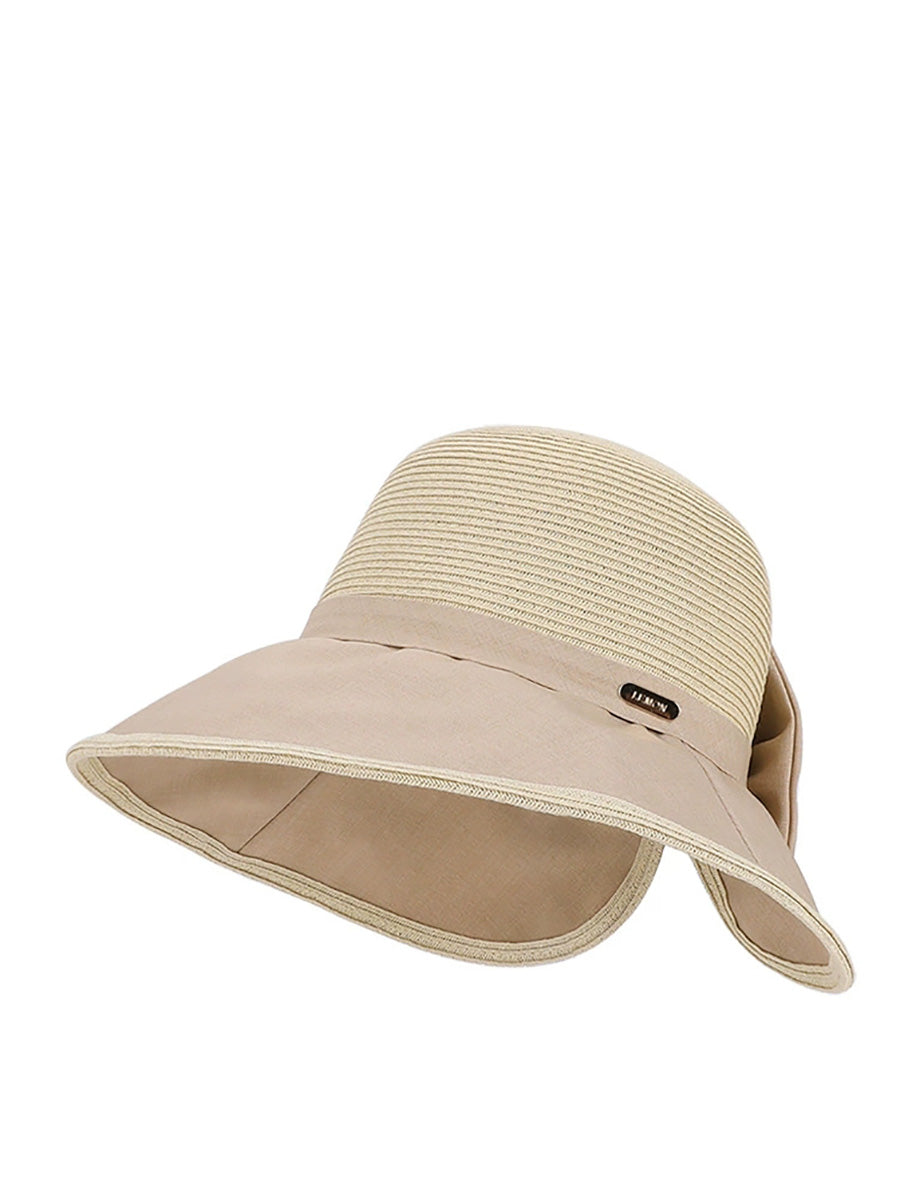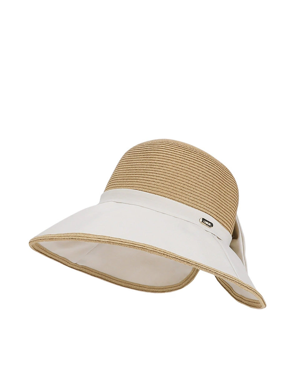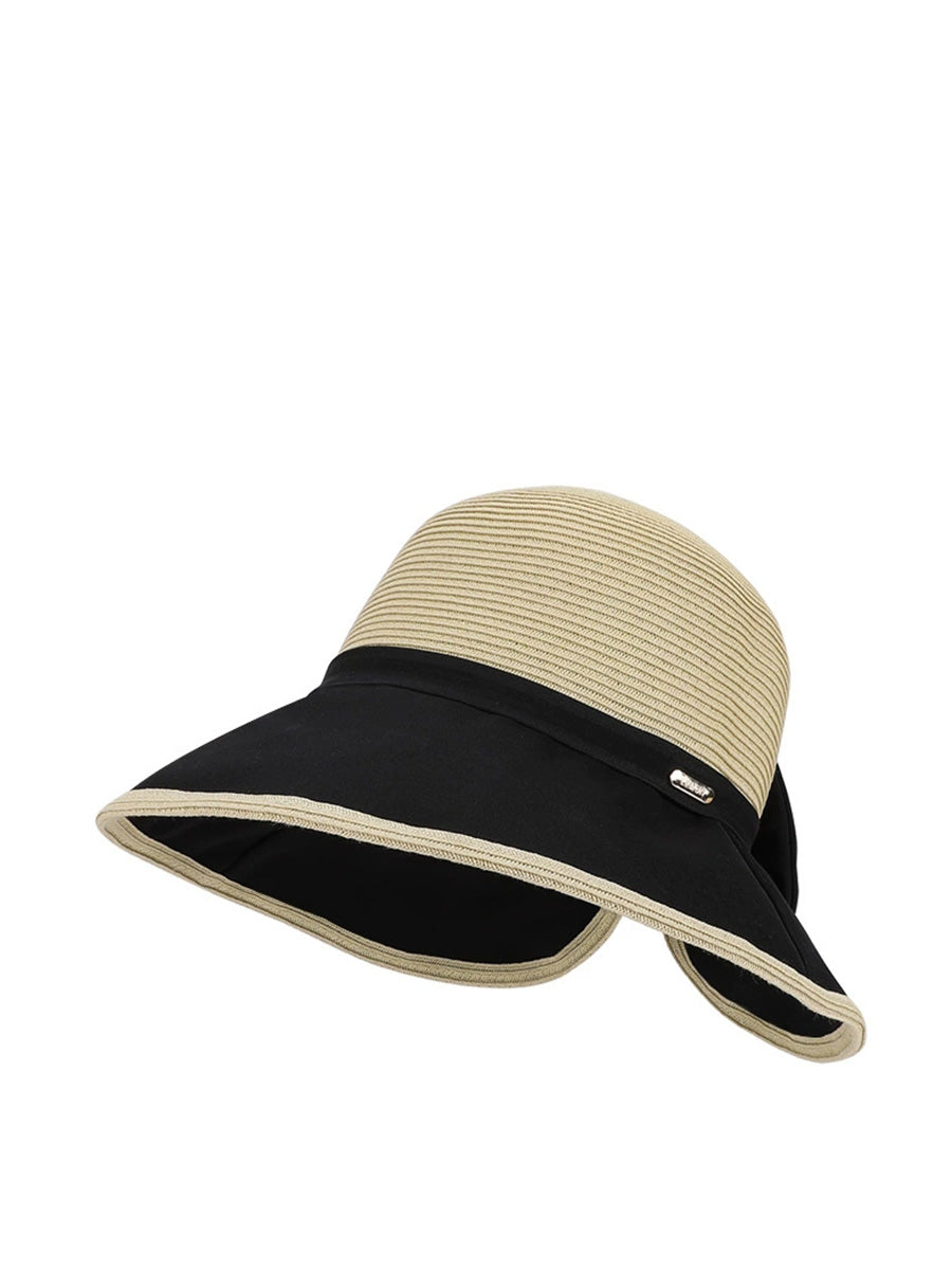 Women Summer Colorblock Bowknot Sunproof Hat